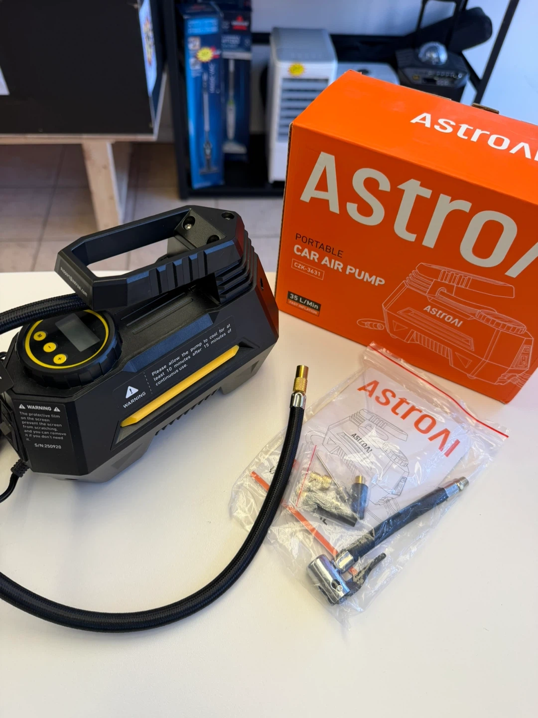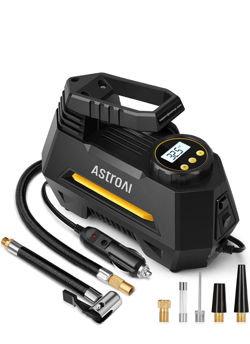 AstroAI Tire Inflator Portable Air Compressor Air Pump for Car Tires-Car Accessories, 9.8Ft Cord-12V DC-Powered Auto Pump with Digital Pressure Gauge, Emergency LED Light for Bicycle, Balloons, Yellow