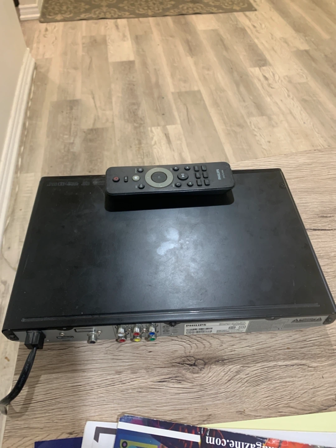 This is a Philips DVD player, comes with its original remote control. It's black and has HDMI output. Loads discs quickly and plays DVDs smoothly.