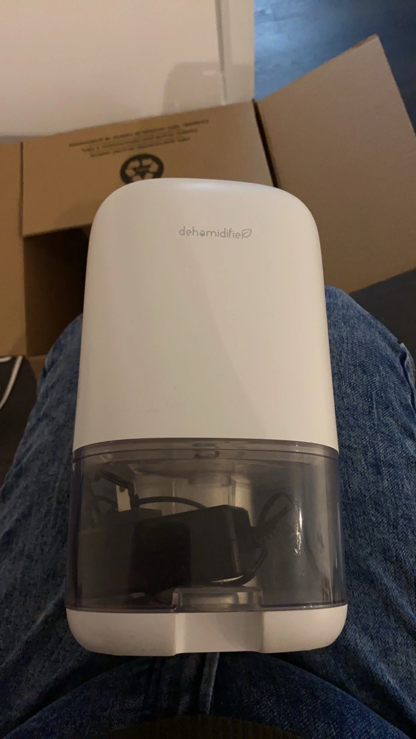 Small, white dehumidifier. Includes a power cord. Please pick up with cash.