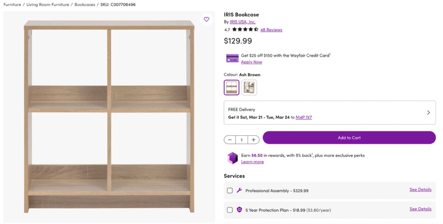 I purchased it from Wayfair for $84.99 + tax, but decided to sell it during assembly.