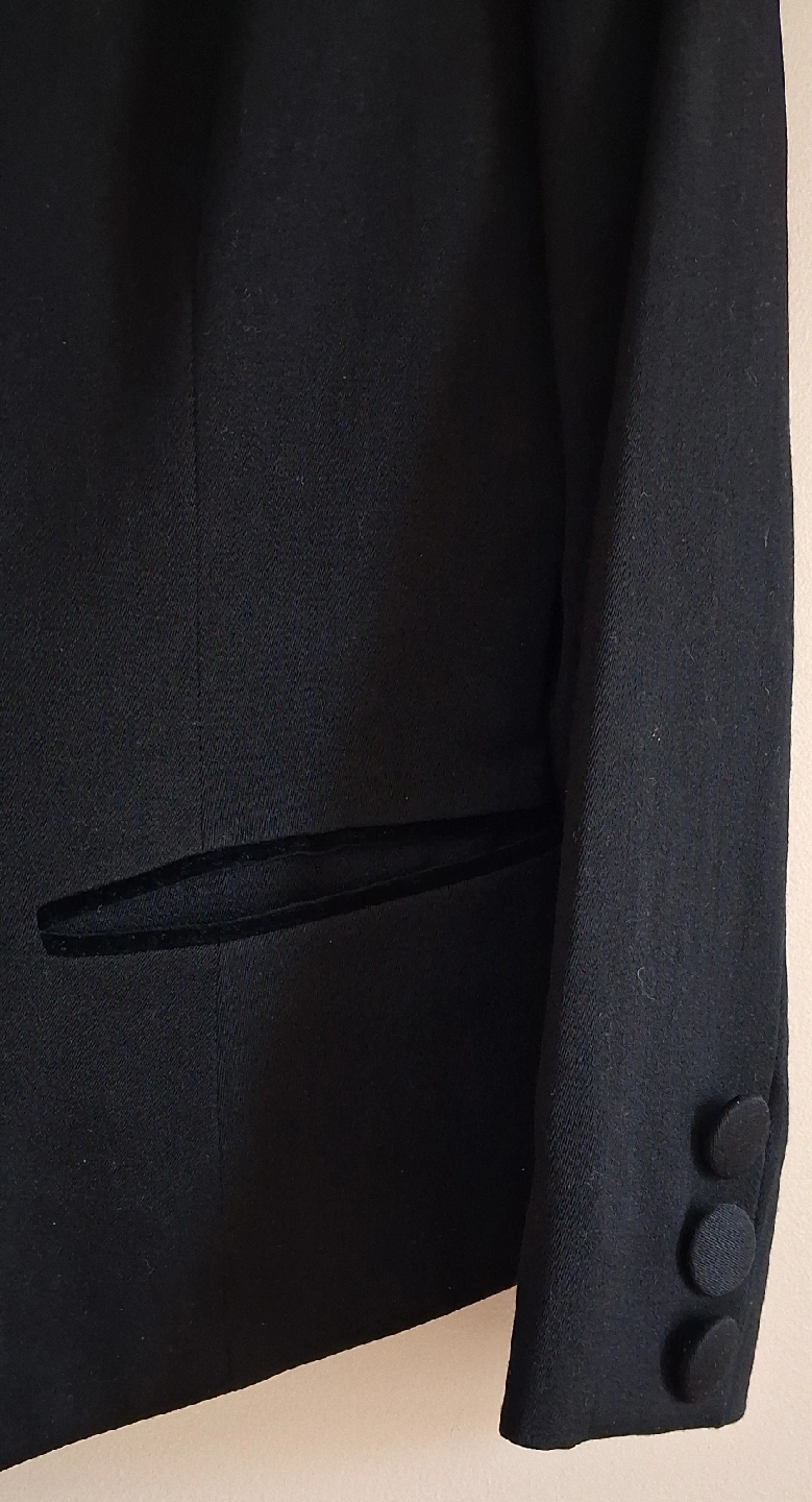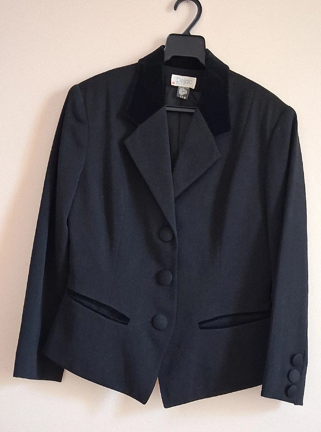 56Classic Dejac Paris blazer in size 38. It's made from 100% new wool and features a sleek black design. Perfect for adding a touch of elegance to any outfit!