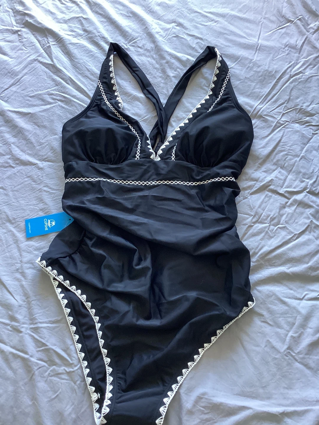 NWT Women's classy size lg Black V Neck Ruched Swimsuit