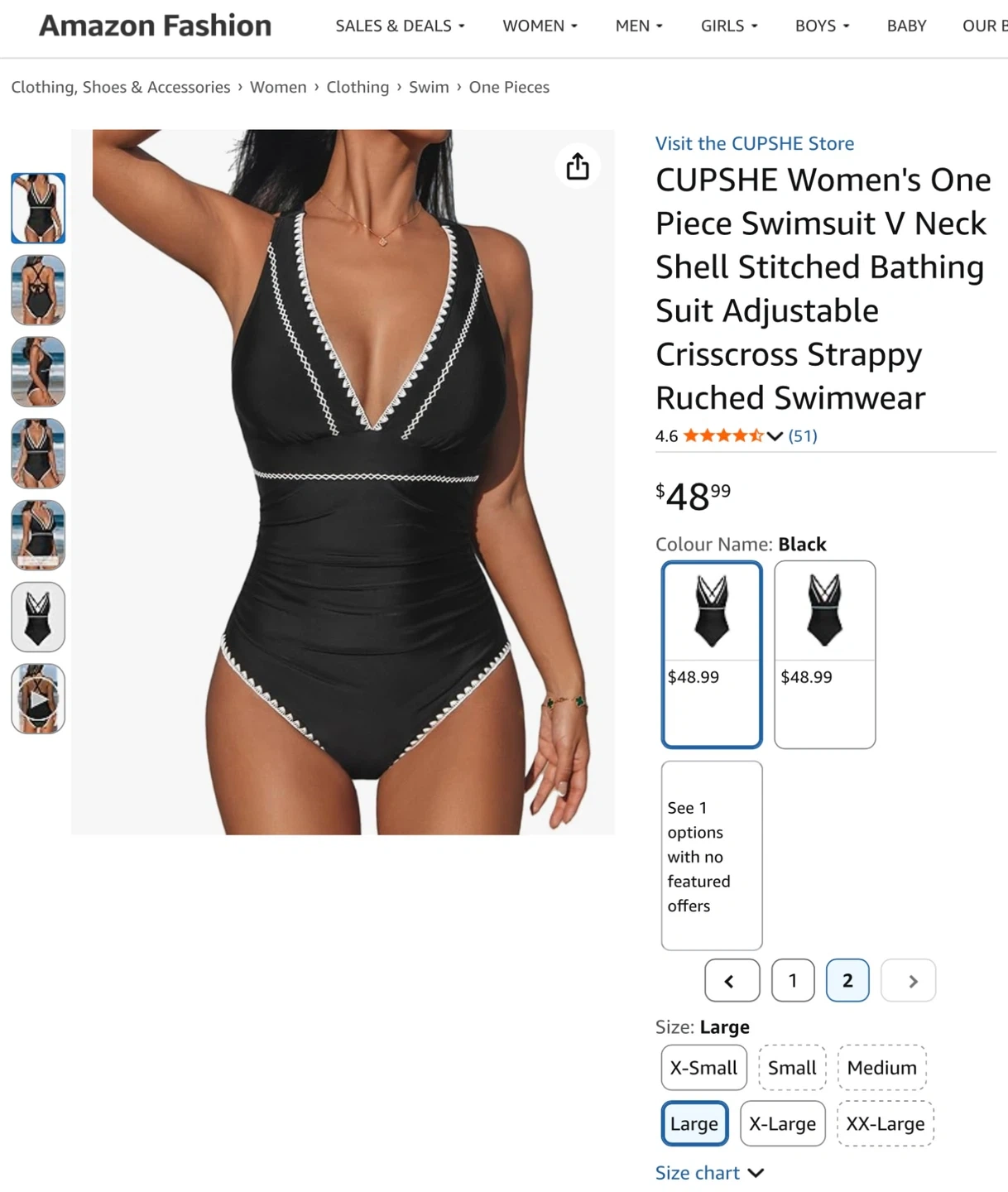 This CUPSHE one-piece swimsuit features a flattering V-neck with shell stitching and adjustable crisscross straps. It's ruched for a comfortable fit. Perfect for your next beach vacation or pool day!