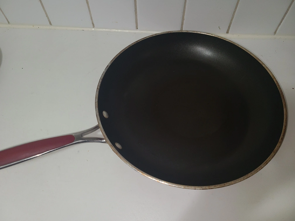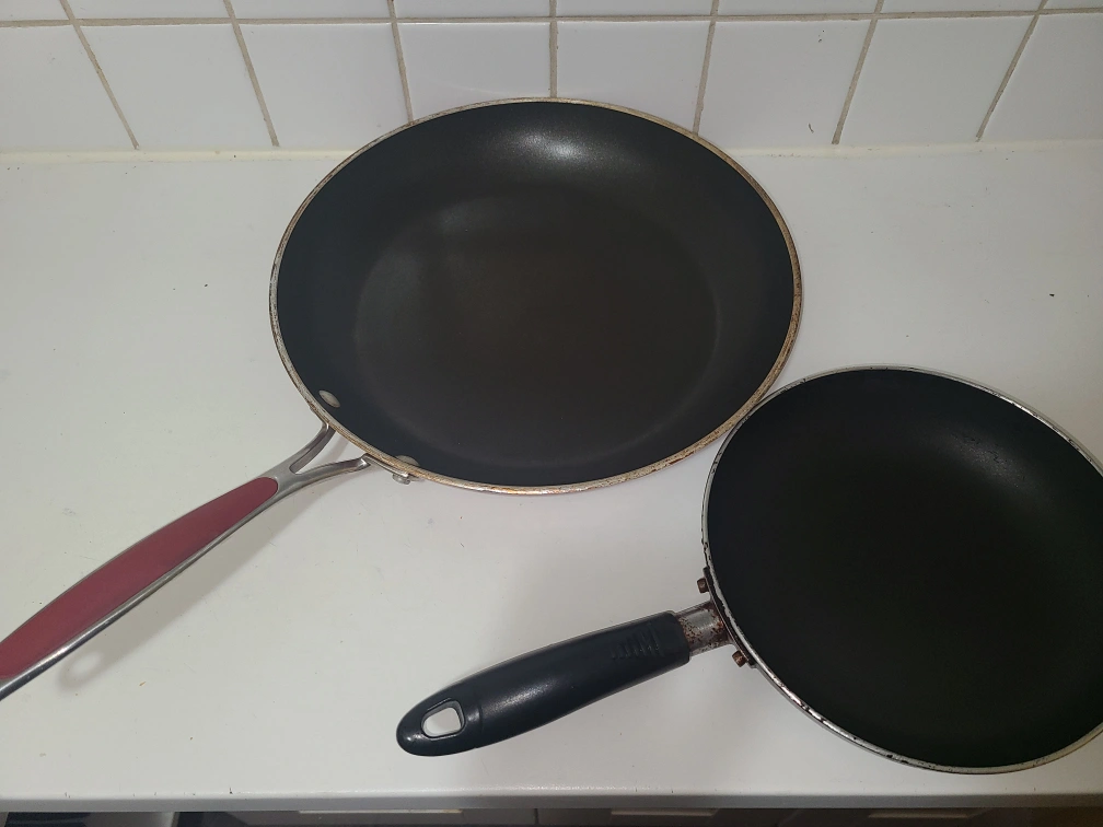 Just few scratches due to use, but they are in pretty good condition and the non-stick coating still works pretty well.