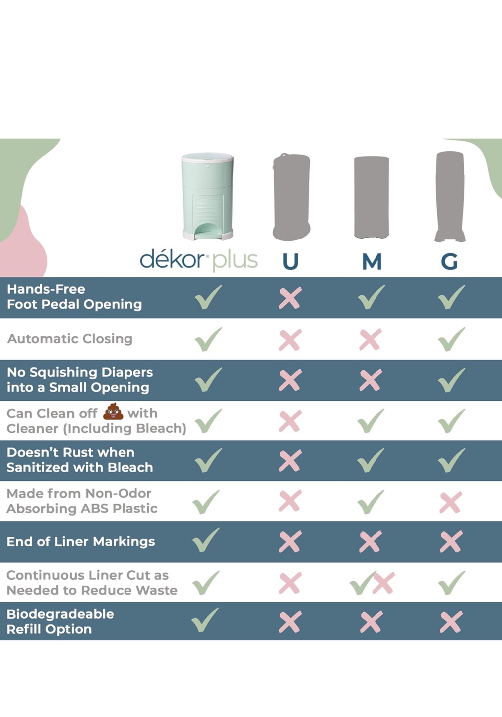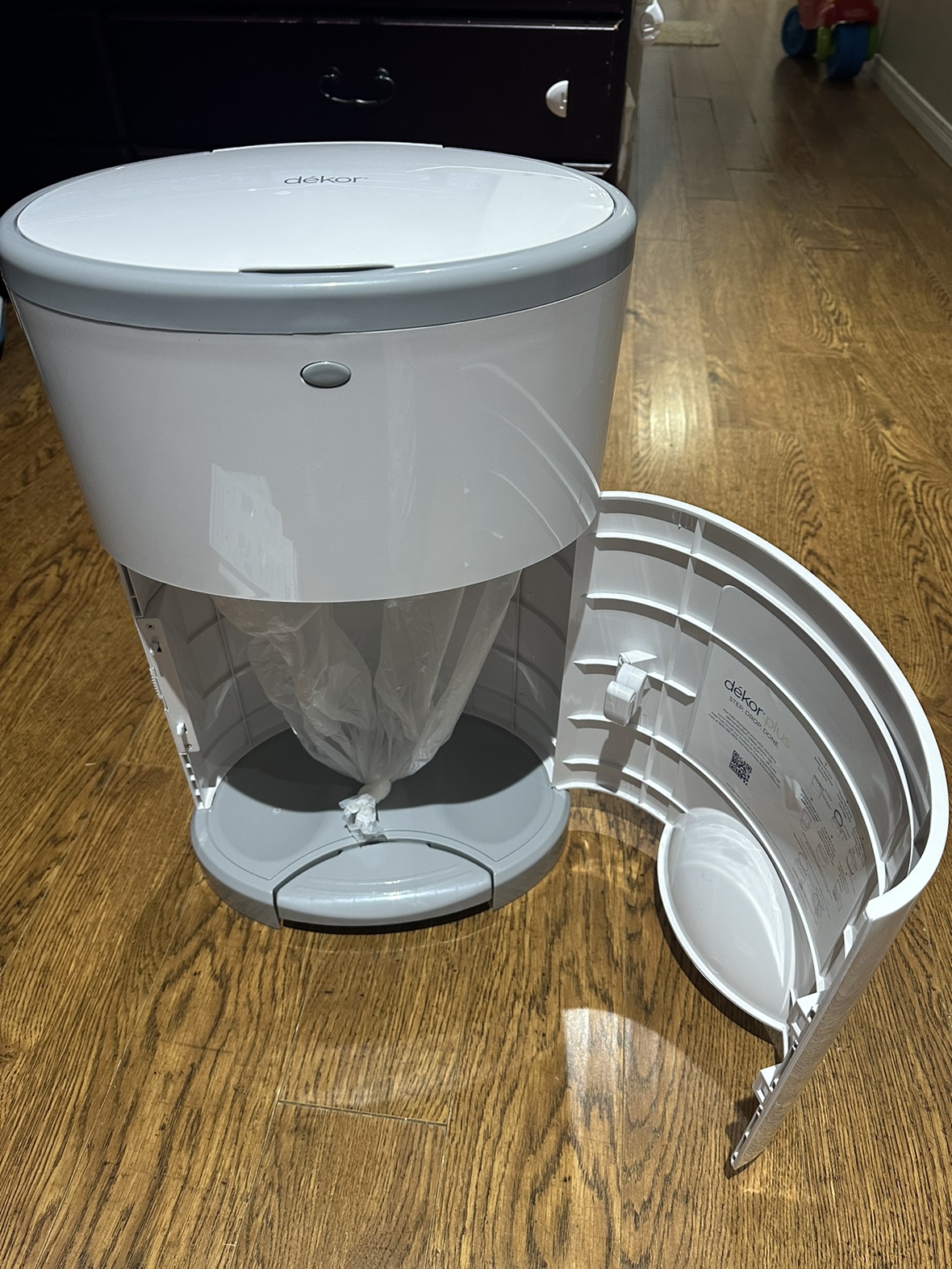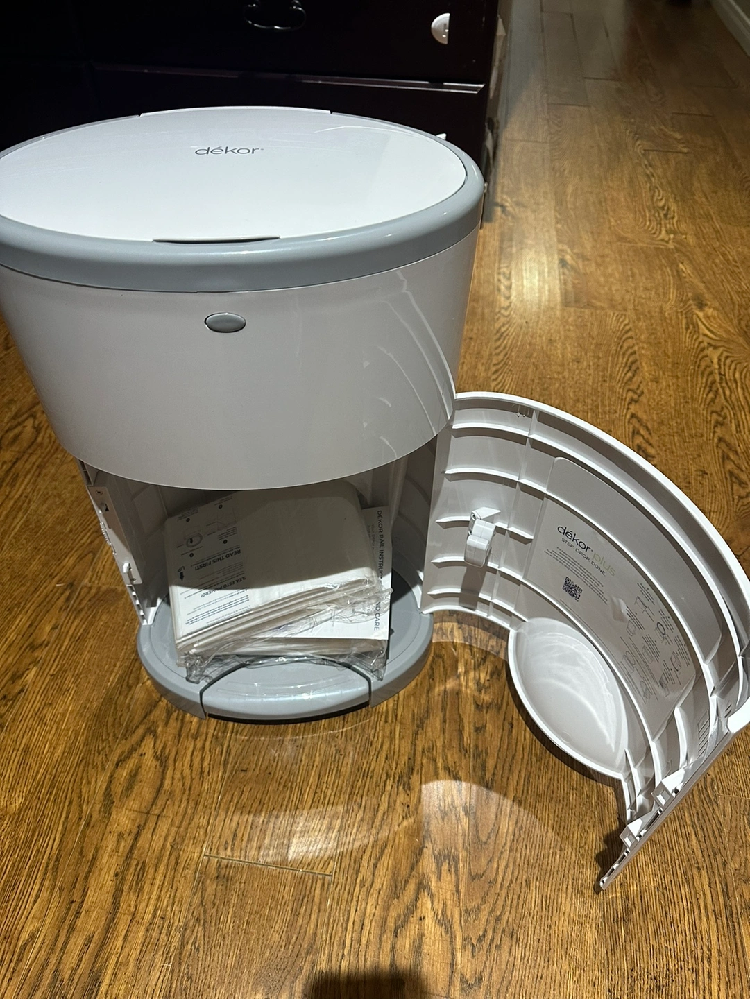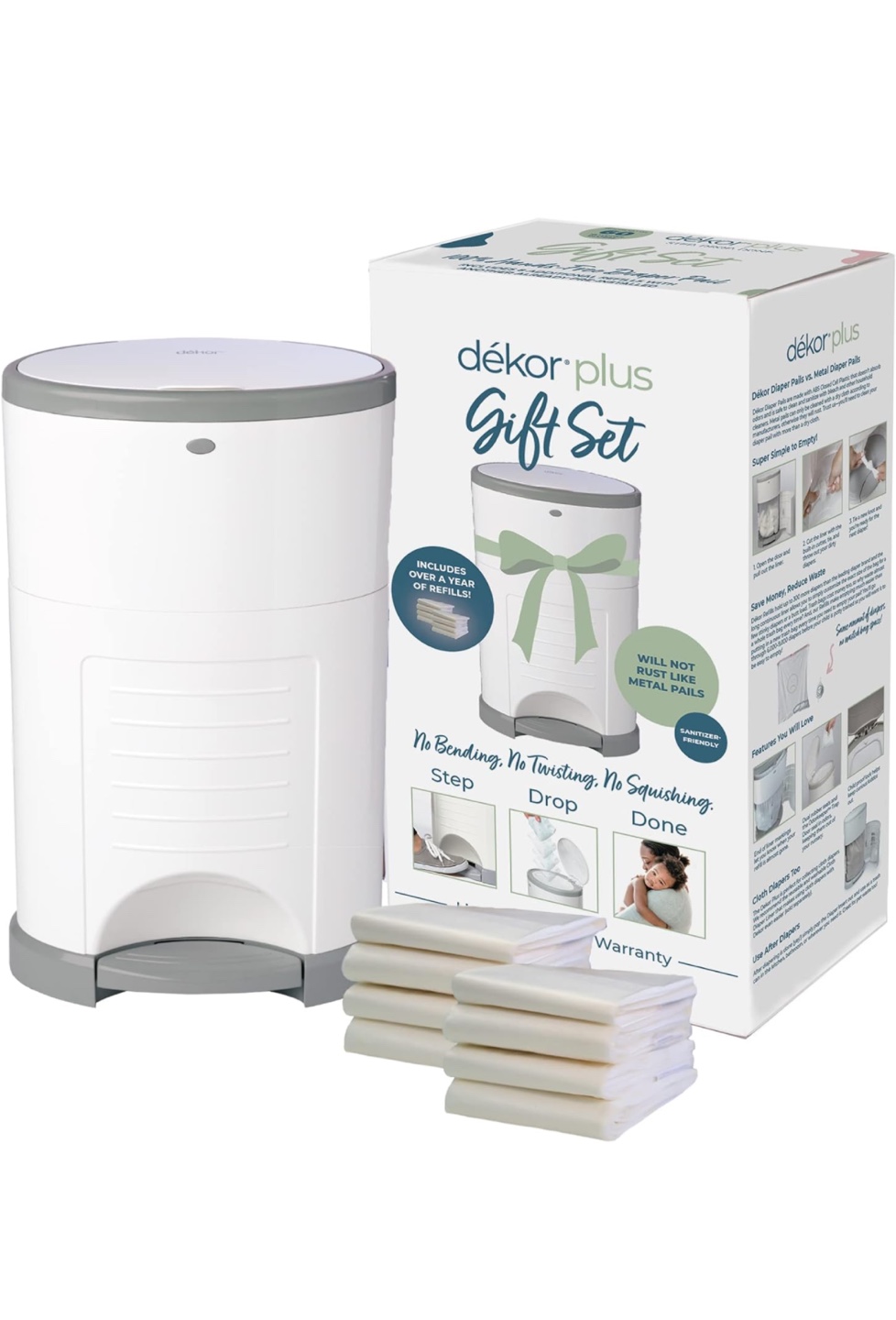 Brand new one Retail price more than $115 A great choice to gift for a new mom Brand : DEKOR Capacity : 56.63 liters Colour : Plus Gift Set Opening mechanism : Step-On Material : Plastic Recommended uses for product : diaper pail & liners Perfect Registry Gift for all New Parents: Includes One Dékor Plus Diaper Pail and Over a Year’s Worth of Dékor Refills (1 Pre-Installed, and 8 Additional Refills). Totally Hands-Free Diaper Pail: Step, Drop, Done! No Bending, No Twisting, No Squishing, Unlike Ordinary Diaper Pails! Most Cost-Effective Diaper Pail Refill System on the Market. Dékor Refill System Creates Less Waste - Use ONLY What You Need! Closed-Cell ABS Plastic that Doesn’t Absorb Odors Over Time—Works like Metal but Won't Rust, and Can be Cleaned and Disinfected with Household Cleaners, Unlike Metal Diaper Pails that Can Only be Cleaned with a Dry Cloth. Holds Up To 60 Newborn Diapers. Effective Triple Odor Control Keeps the Smell in the Pail. Pickup at northwest London or can deliver with extra pay