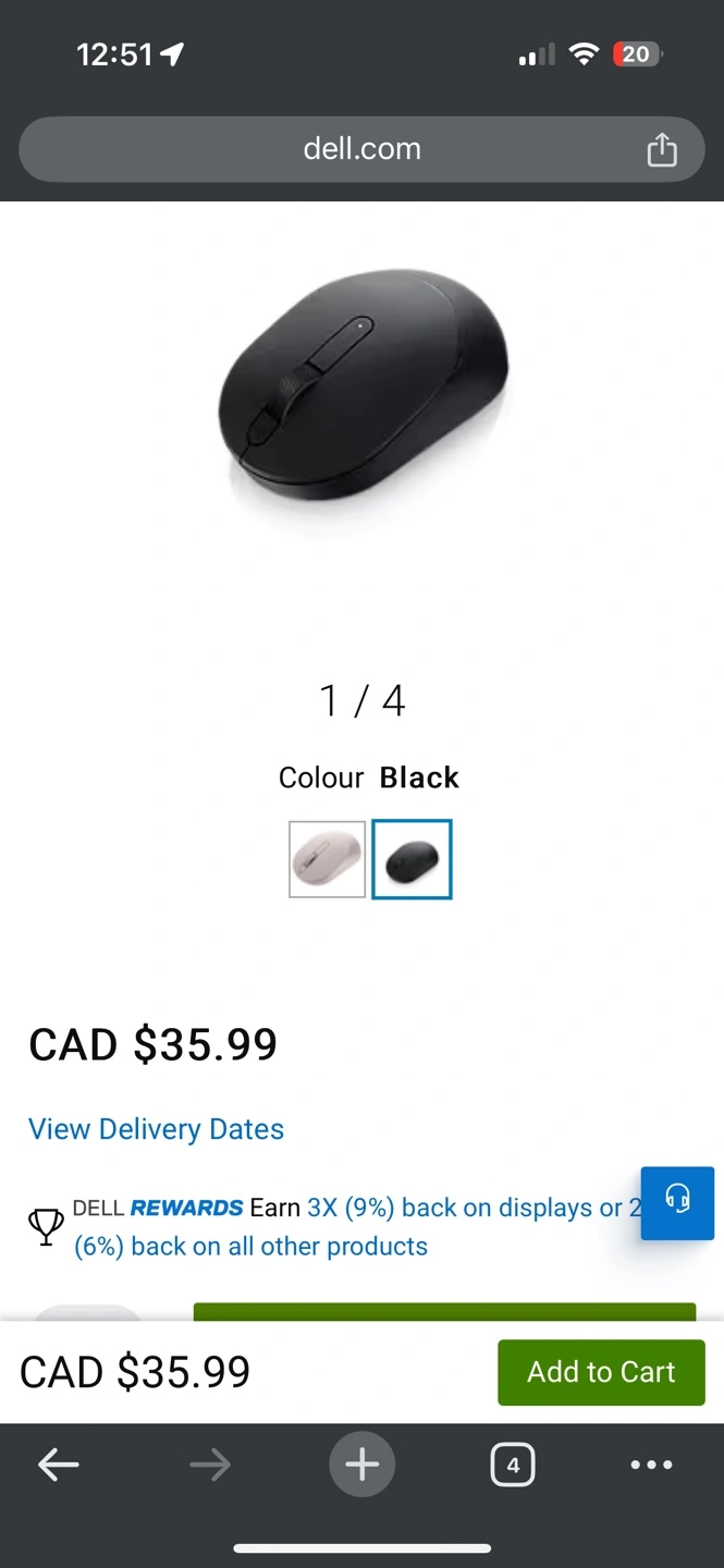 Dell Mobile Wireless Mouse – MS3320W Used only one week. Received one from my company, so sell this one. Brand new is $36 plus tax.