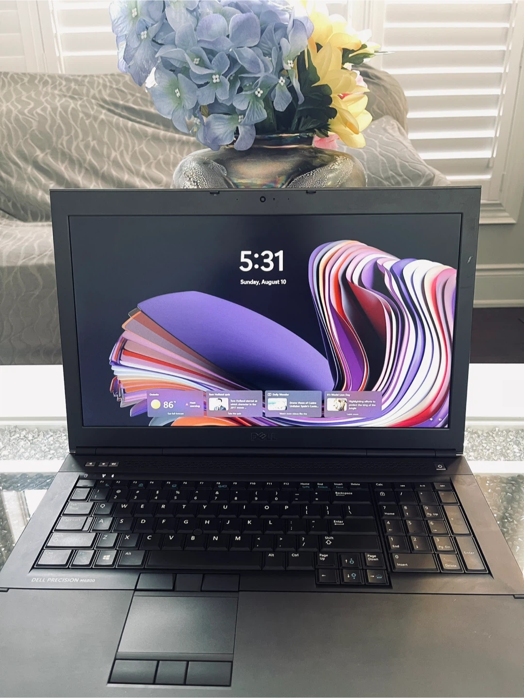 Selling a Dell Precision M6800 high-performance workstation laptop — powerful, durable, and perfect for design, editing, engineering, gaming, and heavy multitasking. ⸻ Specifications: ✅ Processor: Intel Core i7-4800MQ ✅ RAM: 16 GB (smooth performance for demanding tasks) ✅ Storage: 256 GB SSD (fast boot & quick load times) ✅ Graphics: 4 GB VRAM (great for CAD, 3D modeling, and graphics-intensive work) ✅ Display: 17.3″ Full HD (1920×1080) Anti-Glare Wide Screen ✅ Operating System: Windows 11 Pro ✅ Battery Health: Excellent ✅ Keyboard: Backlit — ideal for low-light use ⸻ Features: • Large 17.3″ screen for better productivity and media viewing • Professional-grade NVIDIA Quadro graphics for design & rendering • Multiple ports: USB 3.0, HDMI, VGA, DisplayPort, SD card reader, Ethernet • Wi-Fi & Bluetooth connectivity • HD webcam & microphone for video conferencing • Includes original Dell charger ⸻ Ideal For: ✅ Graphic design & video editing ✅ Engineering & CAD software ✅ Students in media/tech programs ✅ Gaming & entertainment This is a professional workstation laptop — message me if you’re interested!
