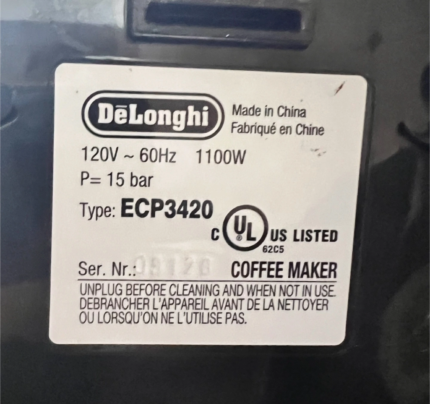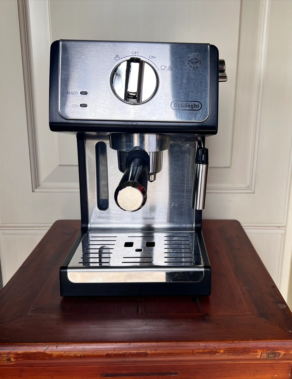 13De’Longhi ECP3420 Espresso & Cappuccino Machine. -15 Bar professional pressure -Espresso, cappuccino, latte -Authentic Italian espresso -3-in-one filter holder -removable water tank -Steel drip tray -Advanced frother -Twin brewing cycle Lightly Used, perfectly clean and ready to be enjoyed. Perfect for smaller spaces, fits nicely under all counters. Looks nice on a kitchen island as the back is finished nicely. See measurements in ad pictures.