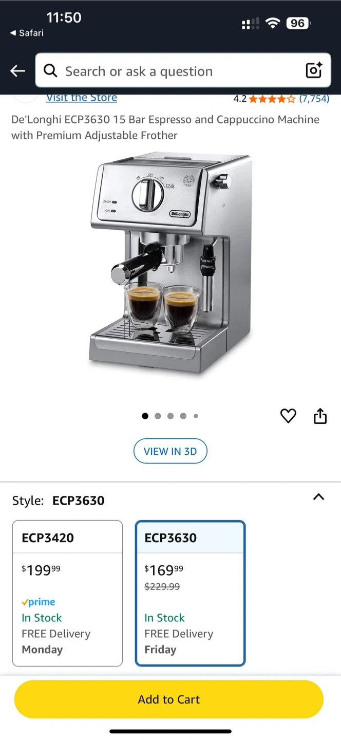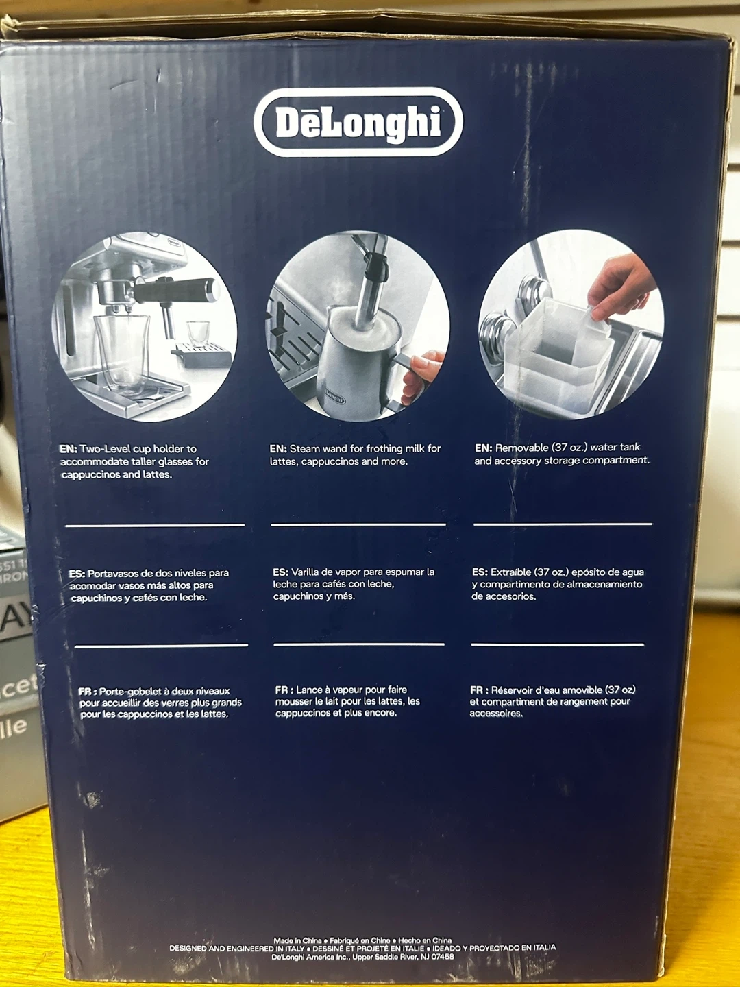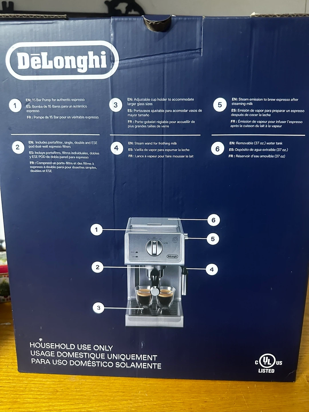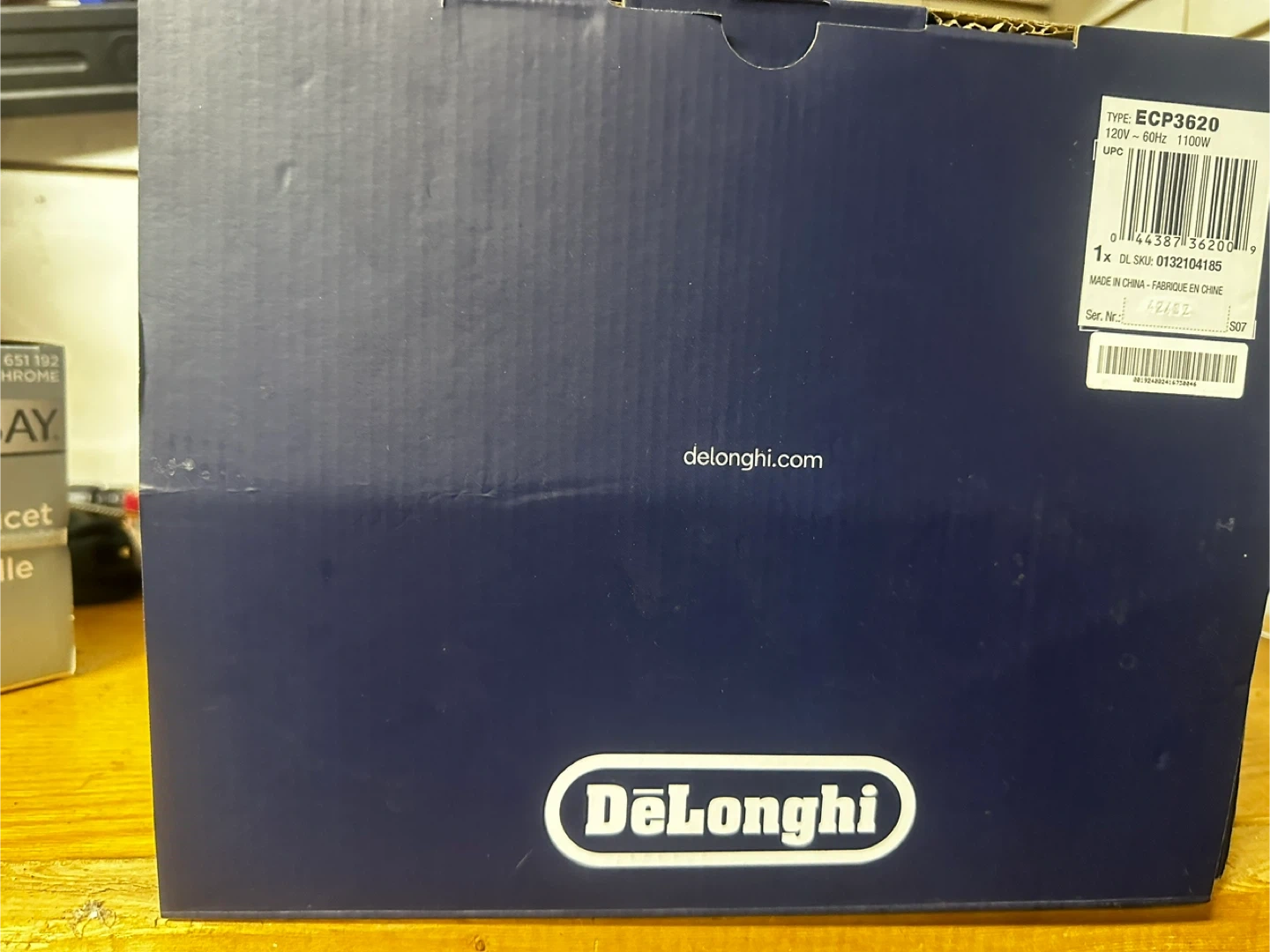 Selling a brand new DeLonghi ECP3630 15 Bar Espresso and Cappuccino Machine! It features a premium adjustable frother and includes a removable 37oz water tank and accessory storage compartment. It also has a two-level cup holder to accommodate taller glasses for cappuccinos and lattes! Originally bought for $229.99