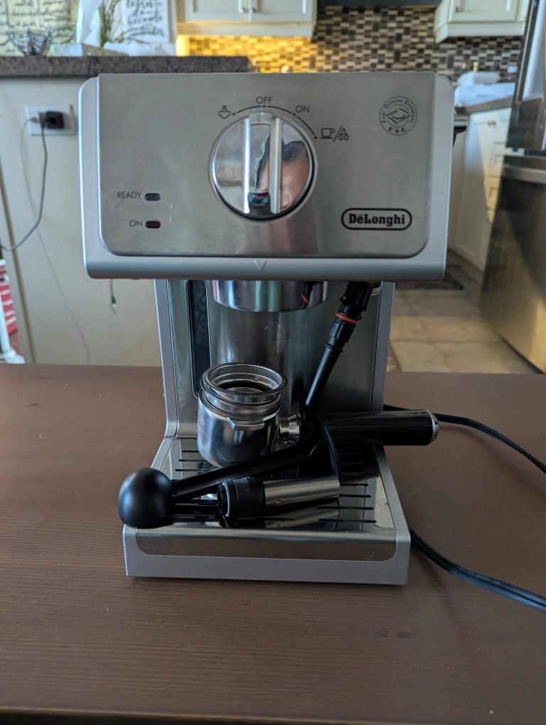 31Selling an almost new DeLonghi espresso machine. It's in excellent working condition and comes with all the accessories you see in the pictures. Perfect for making delicious espresso at home!