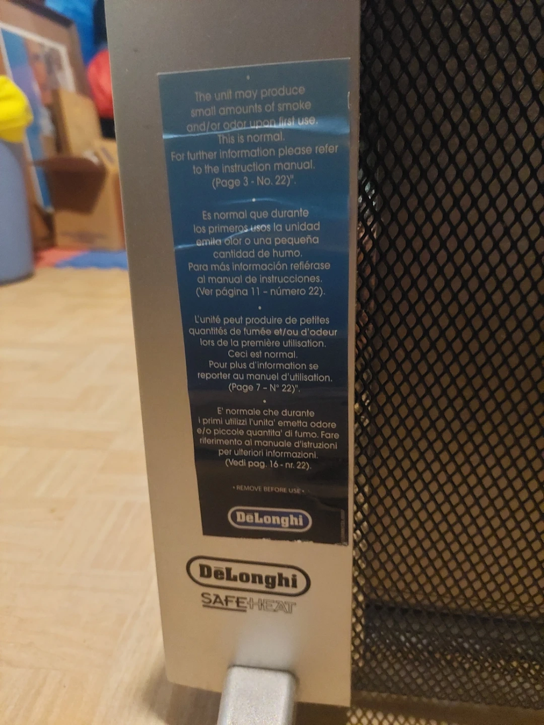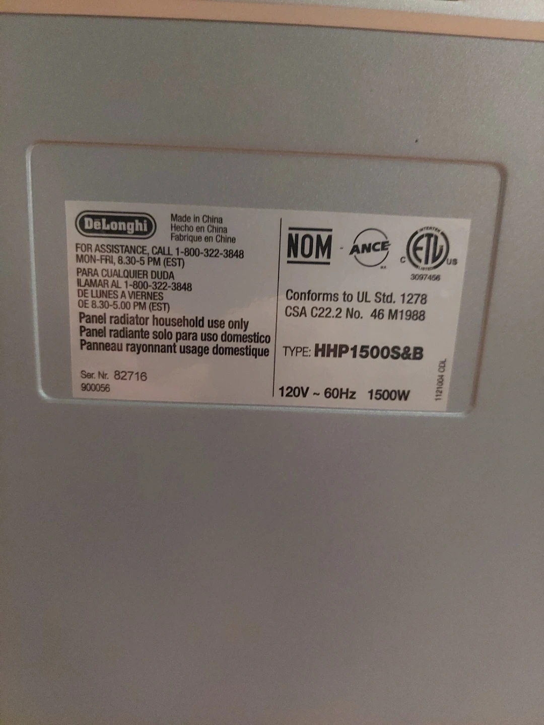 15Selling a DeLonghi panel radiator, model SAFE HEZ HiH1500S&B. It's in great shape and ready to keep you warm this winter! This panel radiator is designed for household use and operates at 120V ~ 60Hz and 1500W