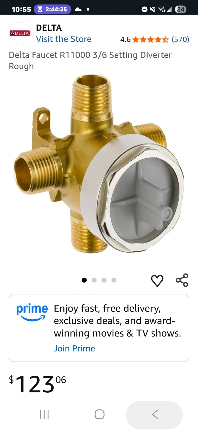 120Selling a new Delta Faucet R11000 3/6 Setting Diverter Rough In.List price $123.06 on Amazon.