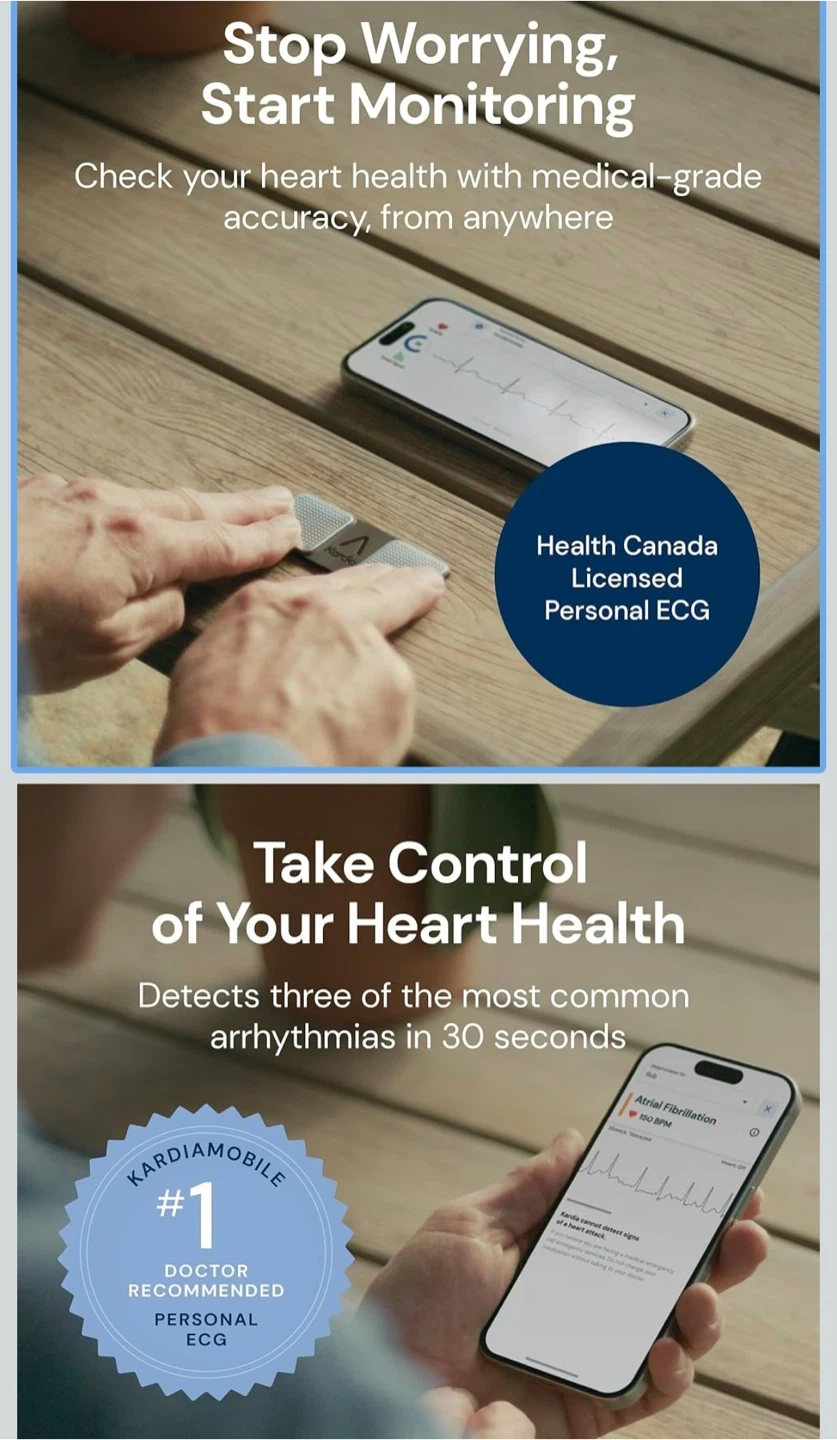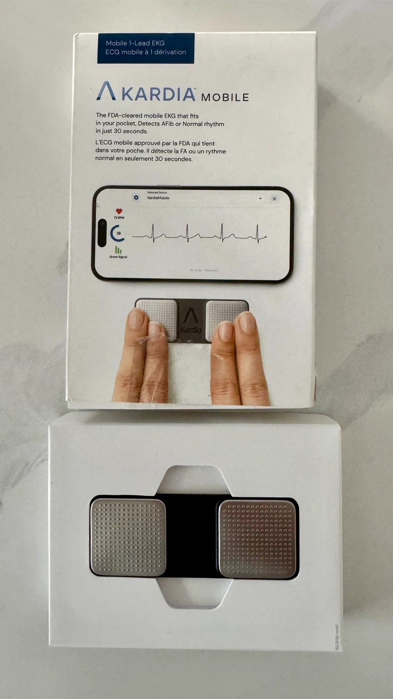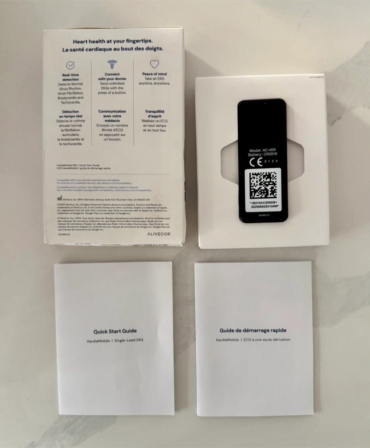 FDA-cleared mobile EKG that fits in your pocket. Detects AFib or Normal Rhythm in just 30 seconds. Model: AC-009. Includes quick start guide.