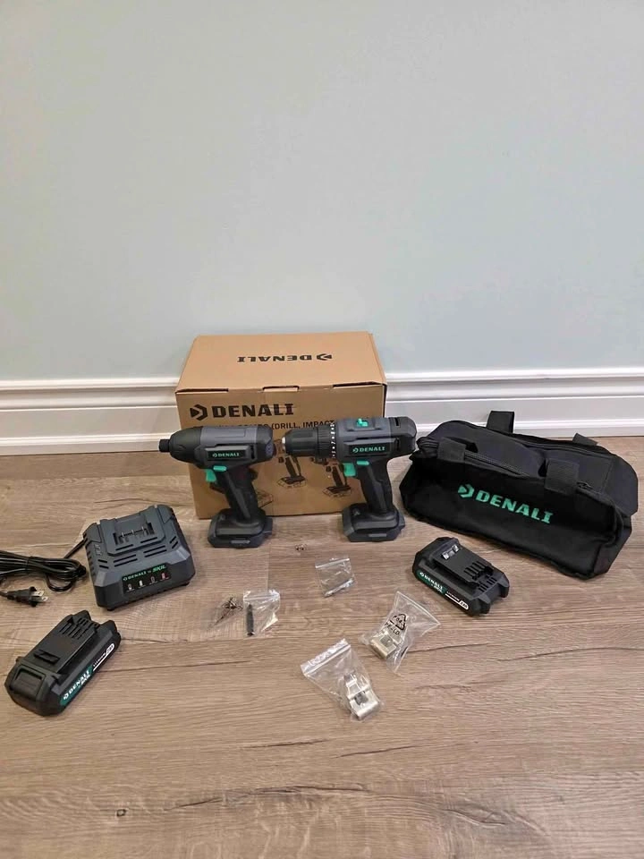 Show allDenali 20V Cordless Drill & Impact Driver Combo Kit – Brand New