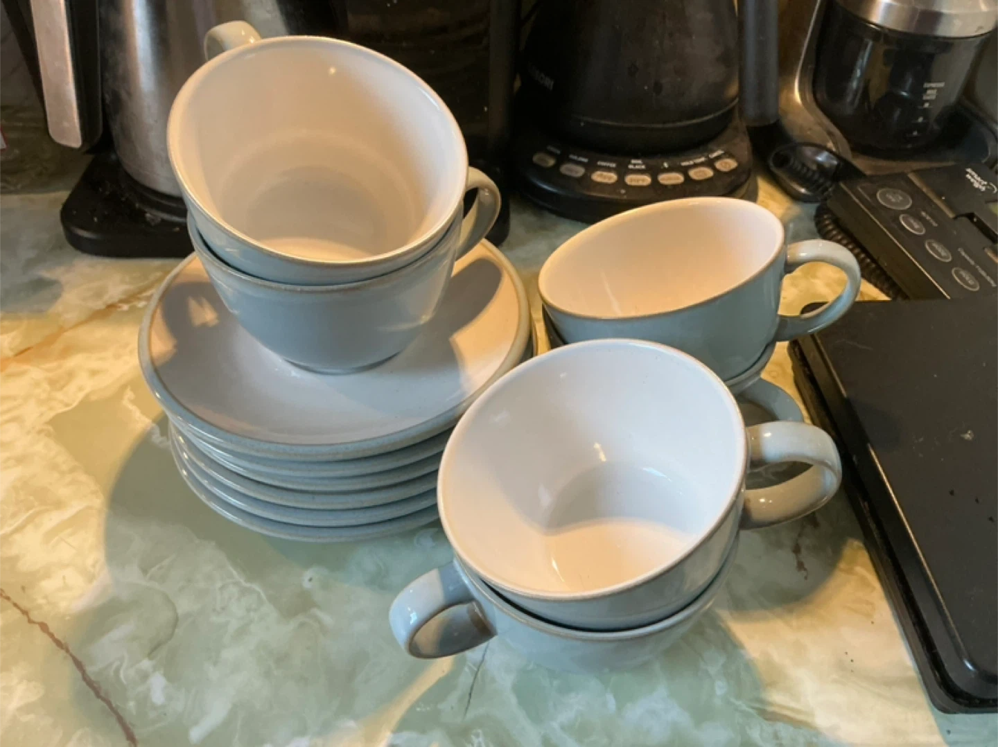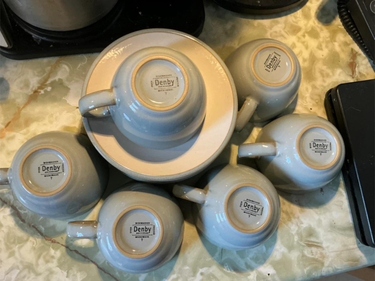 10Selling a set of Denby stoneware cups and saucers. They are dishwasher and microwave safe. Perfect for your morning coffee or tea!