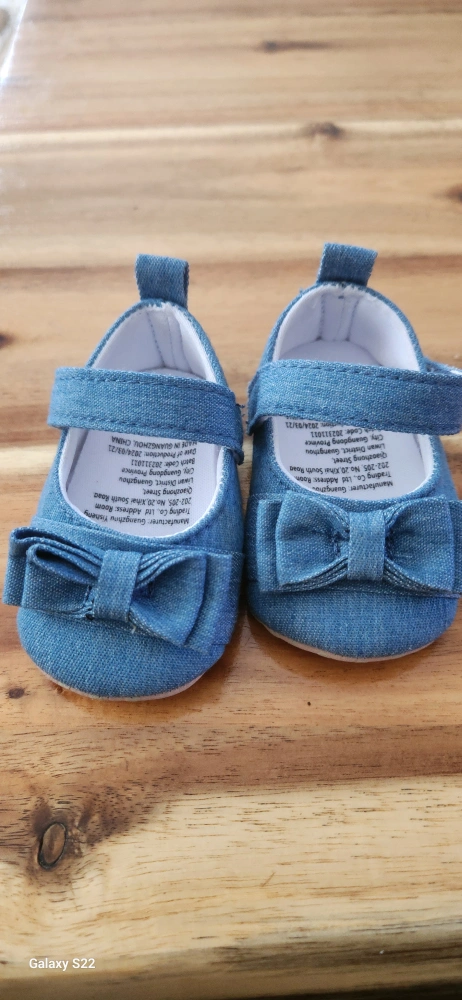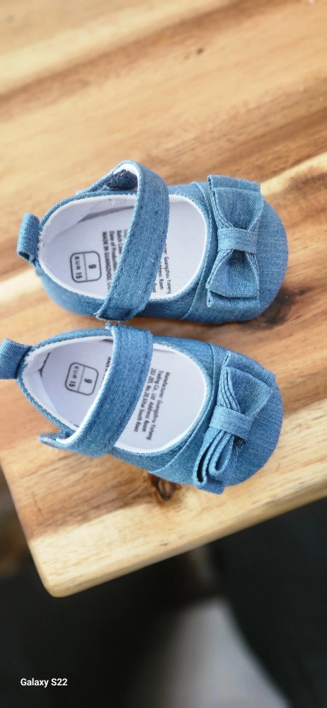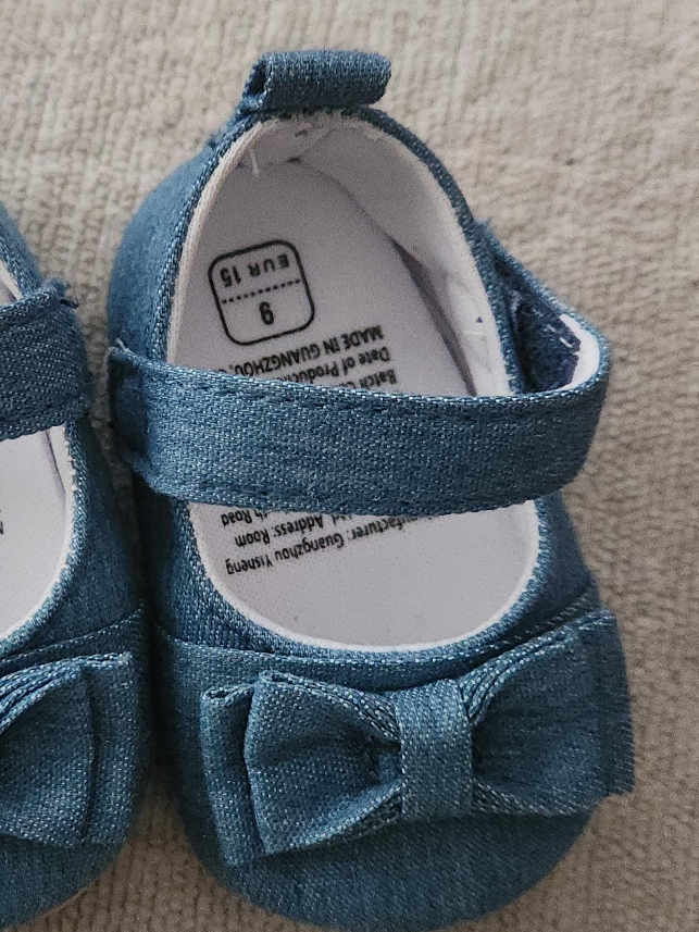 Super cute pair of denim baby shoes! They feature a sweet little bow and are in excellent condition. The size is 9 (EUR 15). Perfect for your little one!