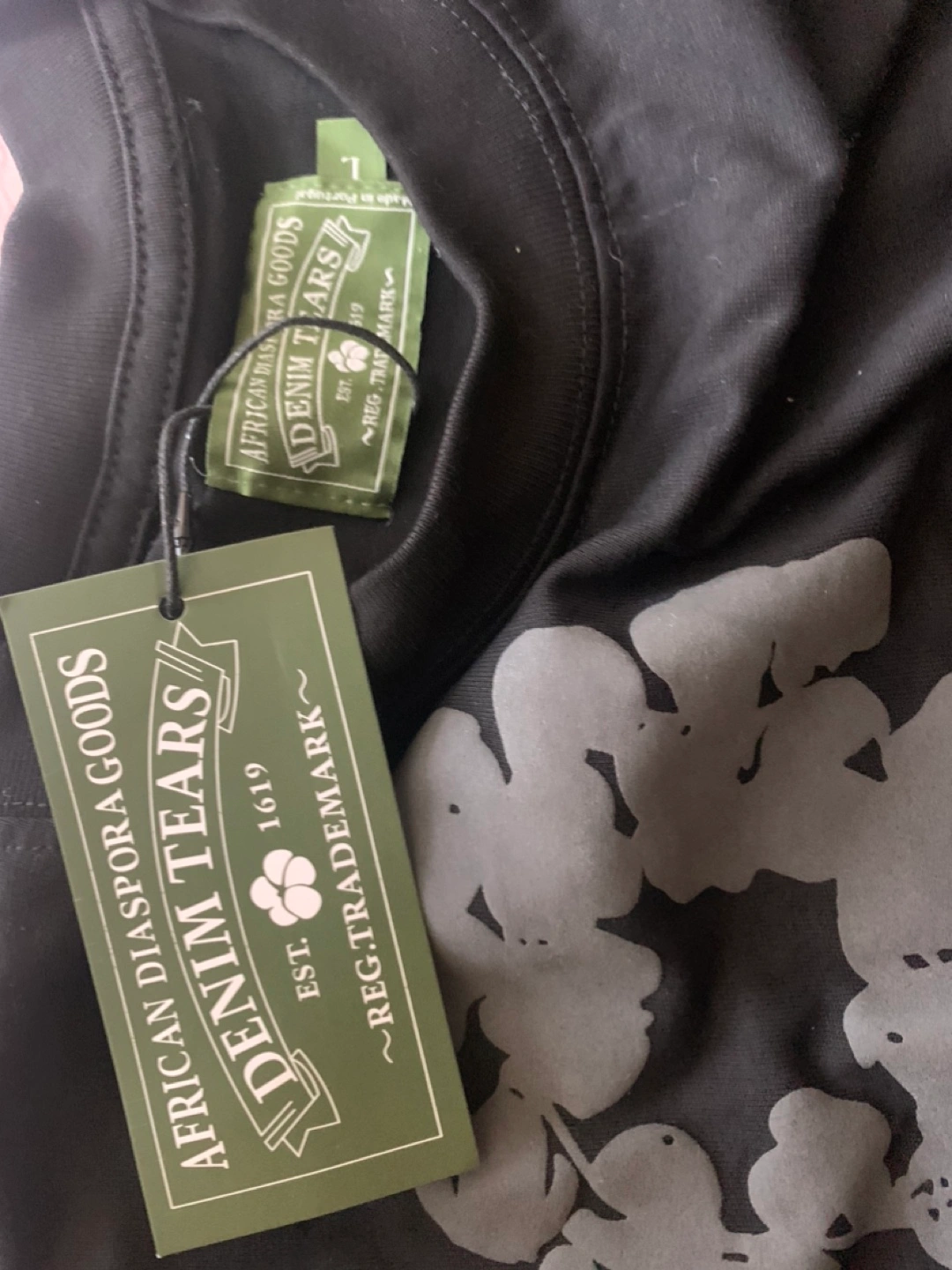 Selling a Denim Tears African Diaspora Goods T-shirt in size L. It's in great condition and features a unique design. Perfect for adding a stylish touch to your wardrobe!
