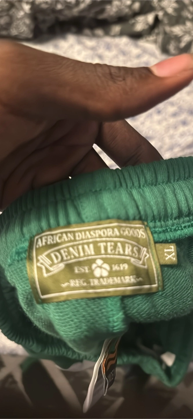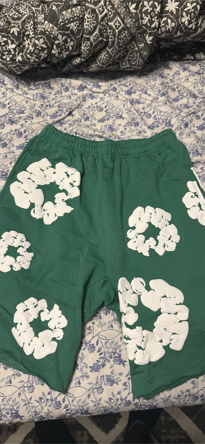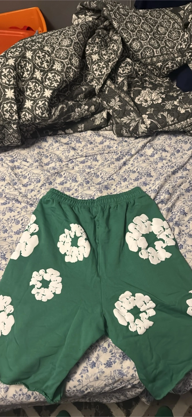 Selling a pair of Denim Tears shorts in green! They're size XL and feature a unique floral design. Great for casual wear!