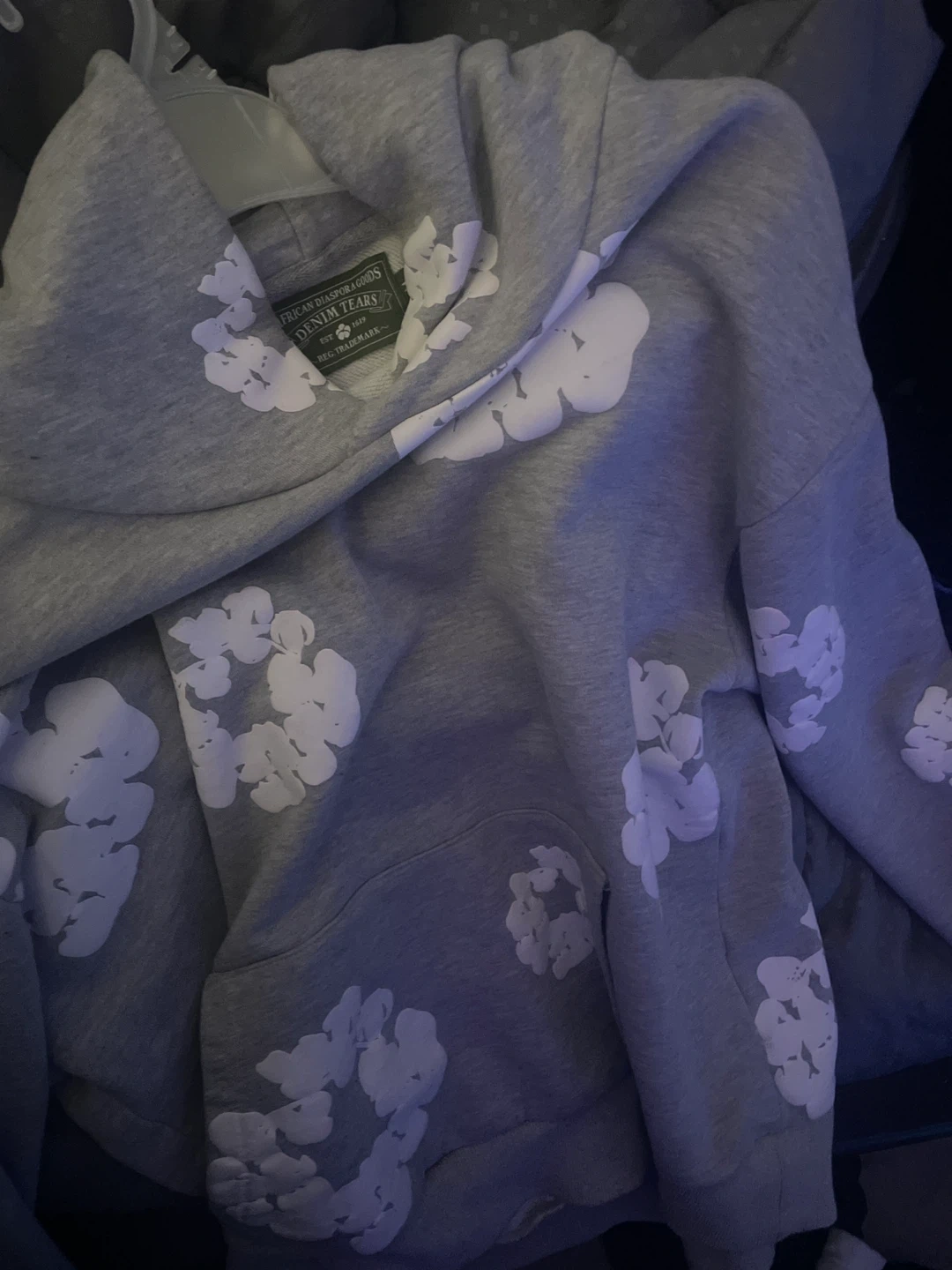 14Cozy Denim Tears hoodie with a cool floral design! It's in great condition and ready for a new home