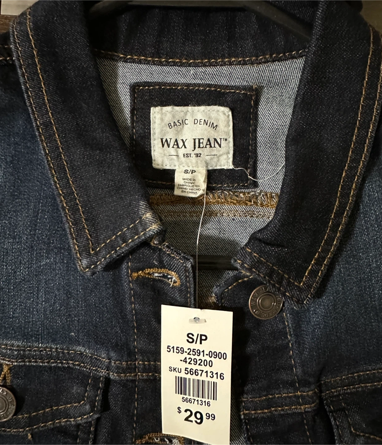 15Cute Wax Jean denim vest in size small. This basic denim vest is in brand new condition! Originally bought for $29.99