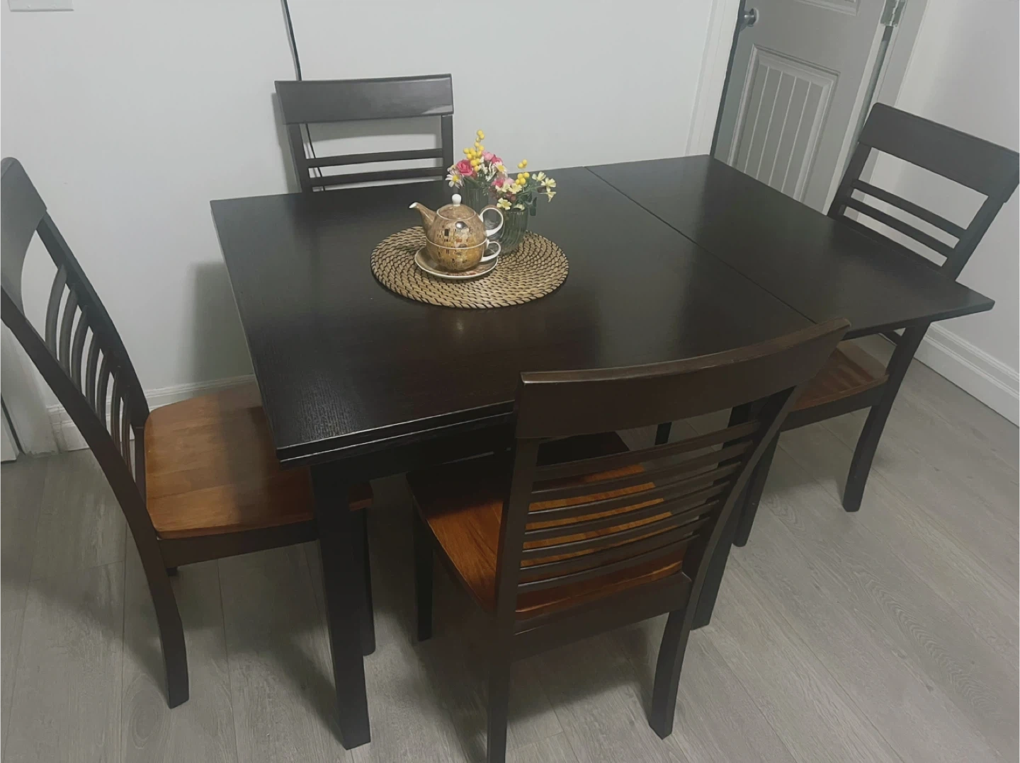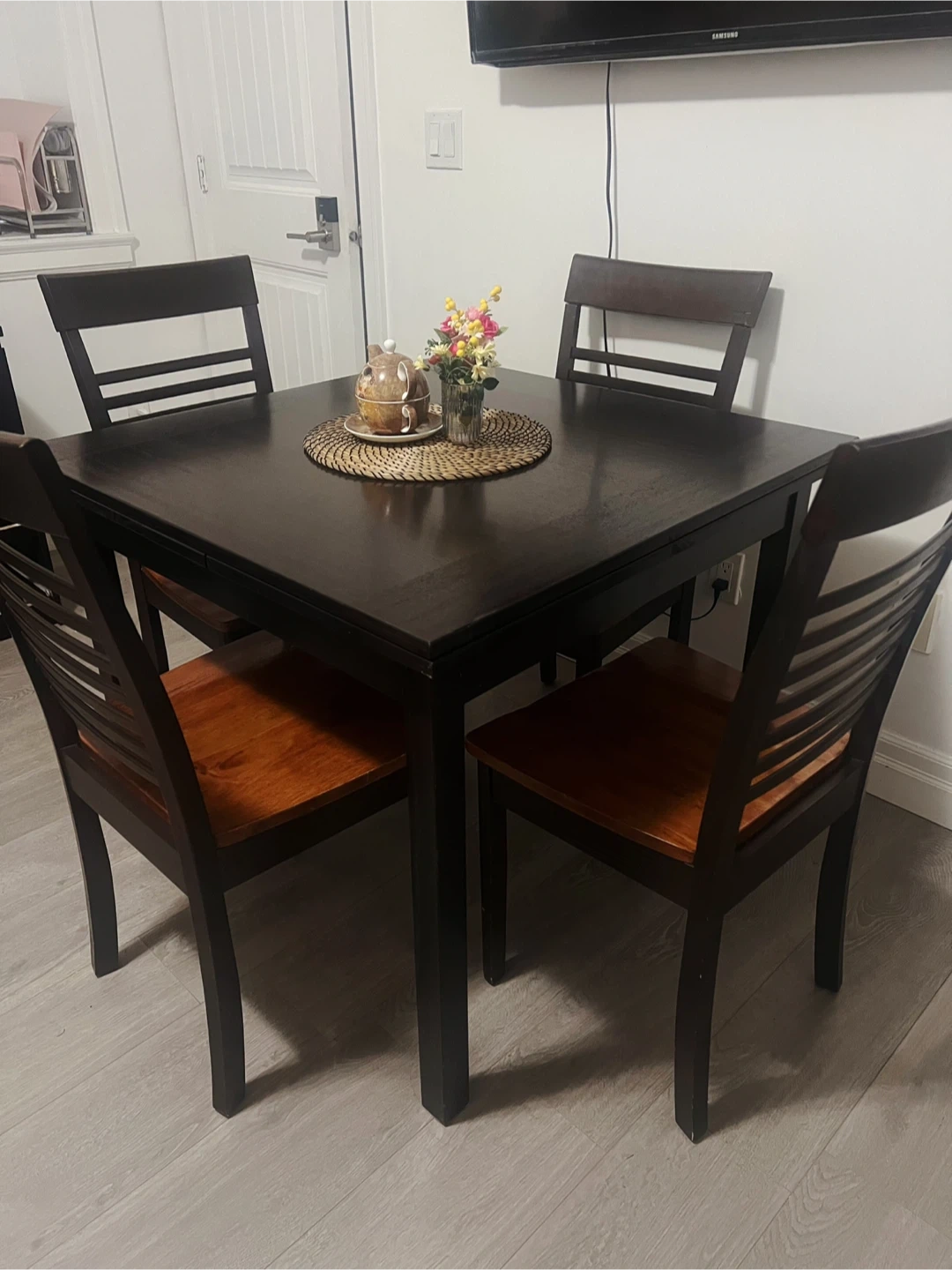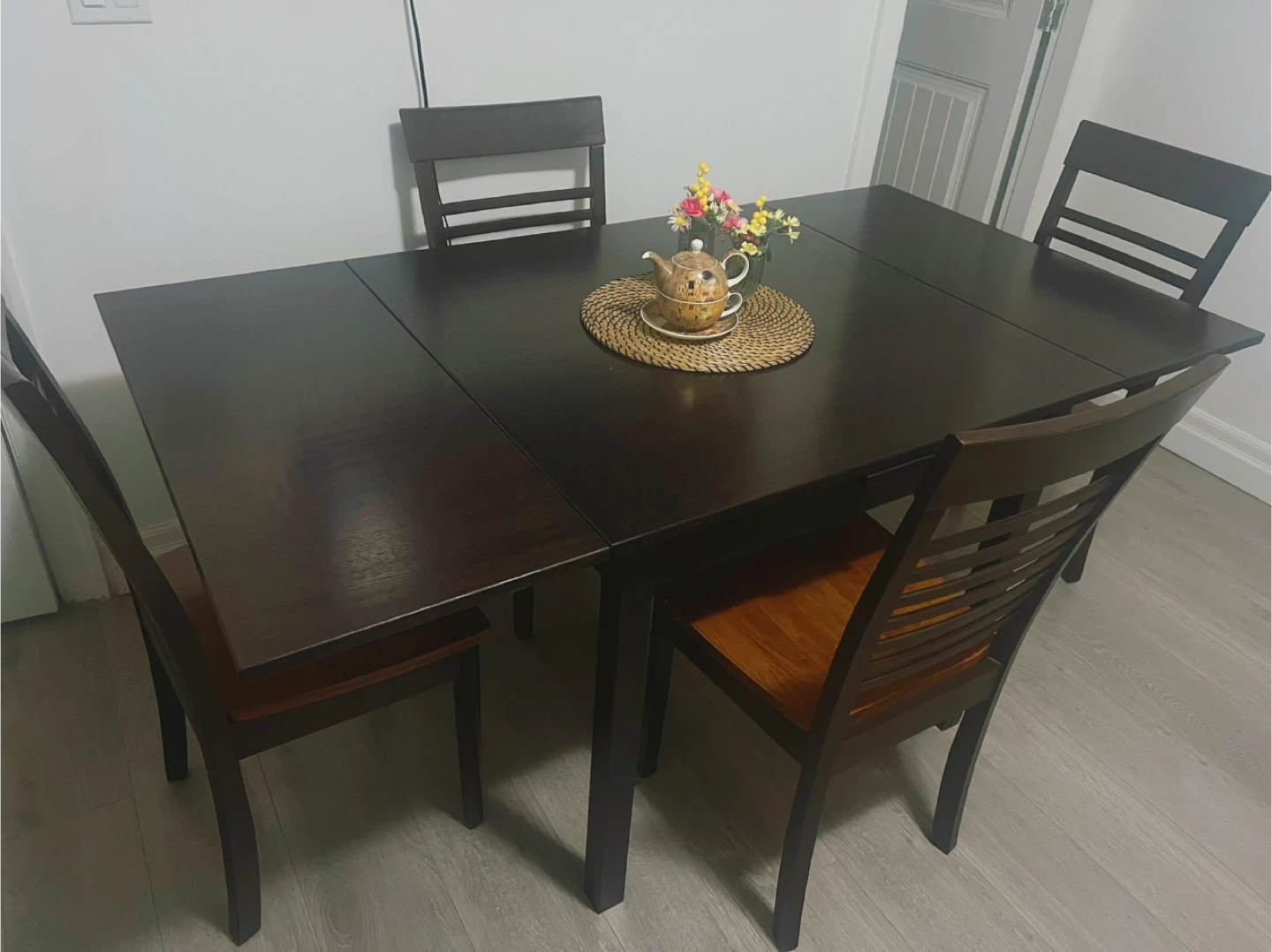 Black Extendable Dining Table with 4 Chairs,delivery available