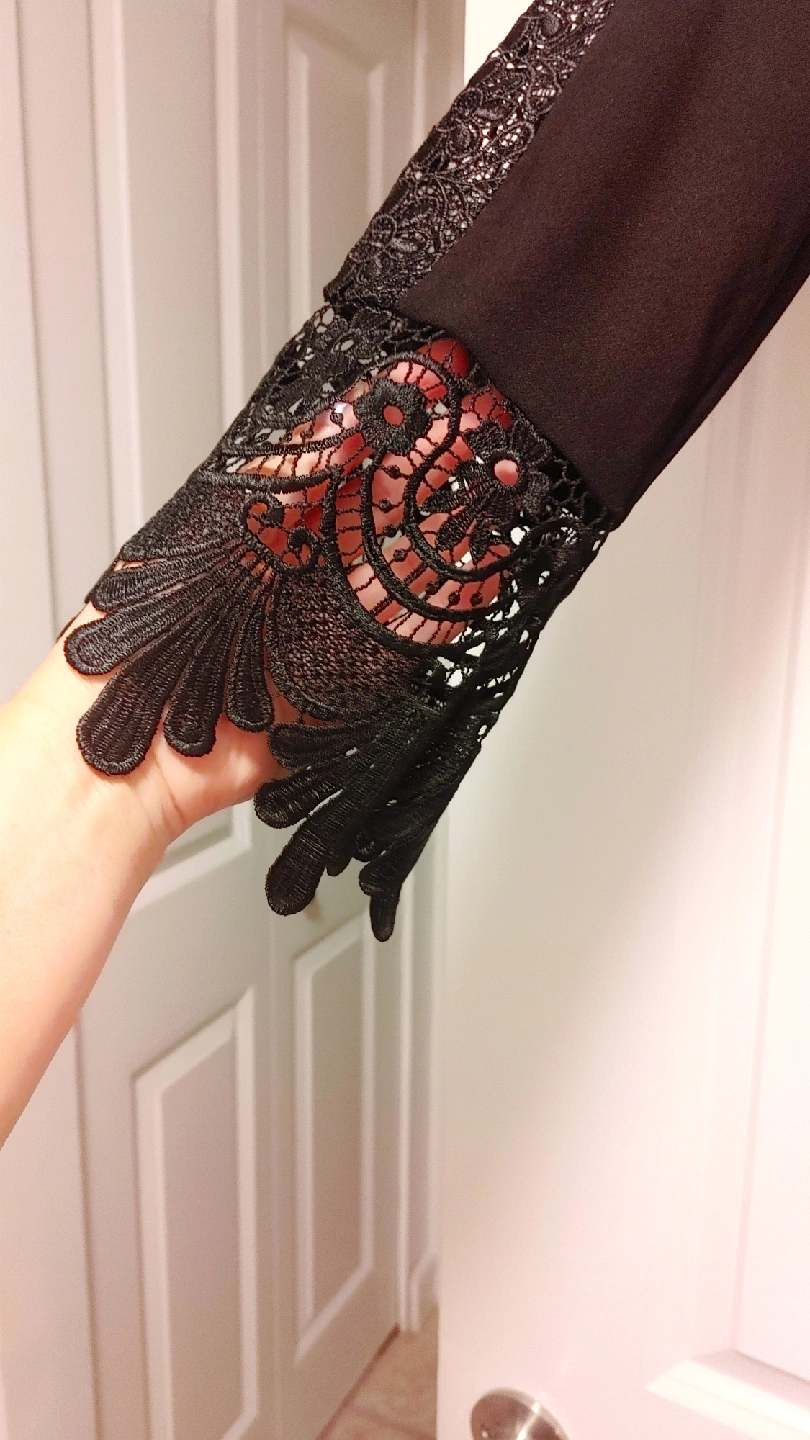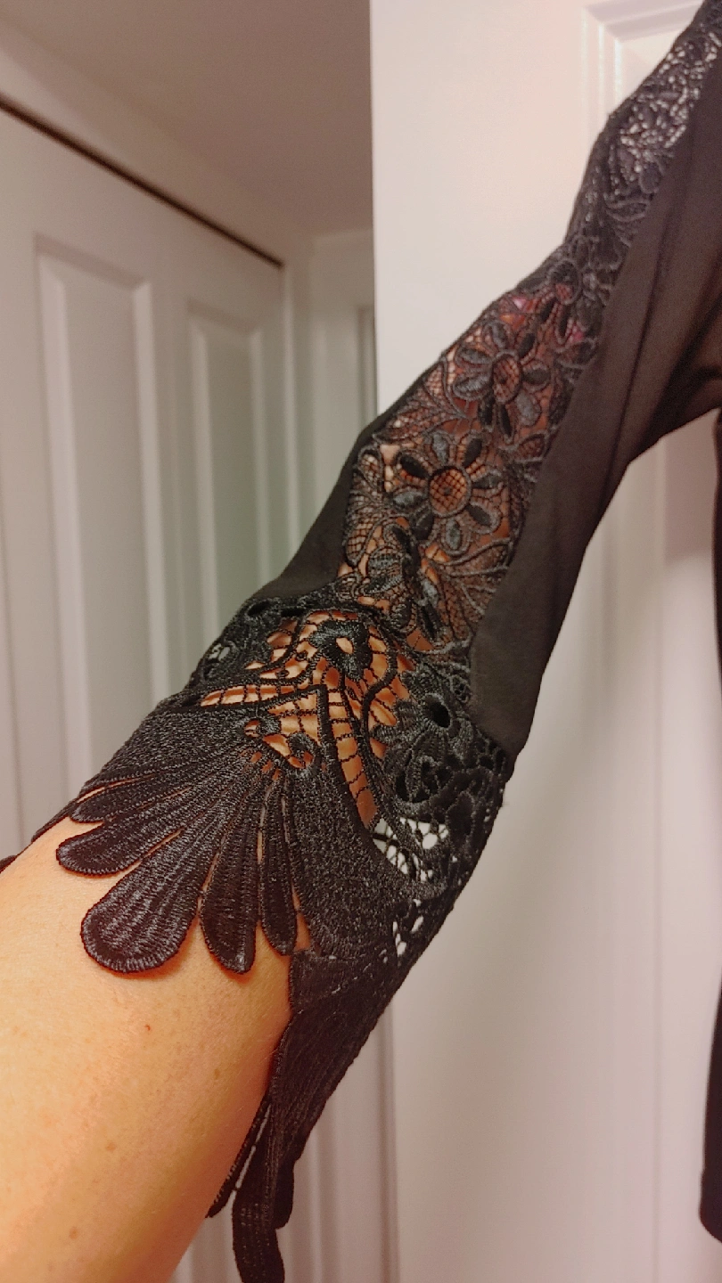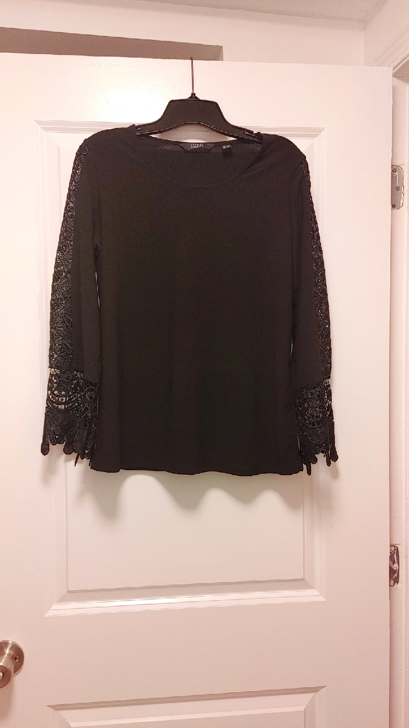 63Here's a lovely black top from Dennis by Dennis Basso! It features beautiful lace detailing on the sleeves, adding a touch of elegance to any outfit Size Medium