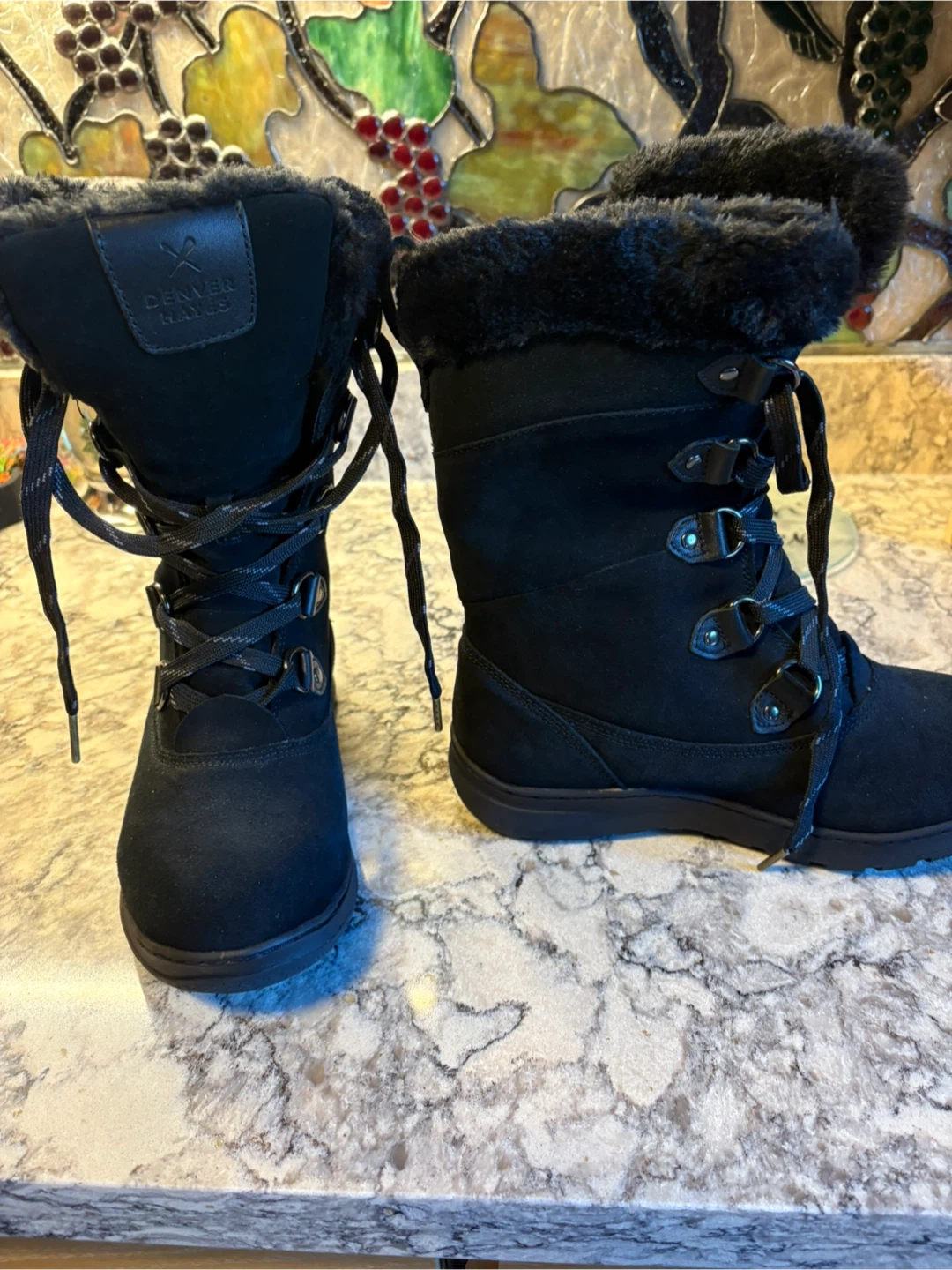 10Selling a pair of Denver Hayes winter boots in black! They're a size 8 and in great condition. Perfect for keeping your feet warm and dry this winter season!