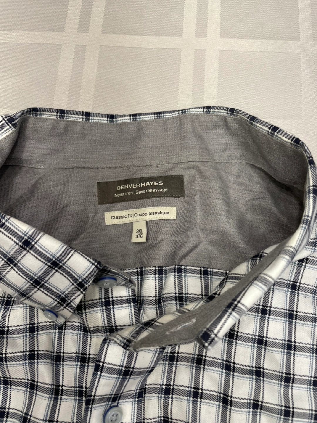 81Selling a Denver Hayes classic fit shirt in size 3XL. It features a black and white checkered pattern. Perfect for a casual or semi-formal look