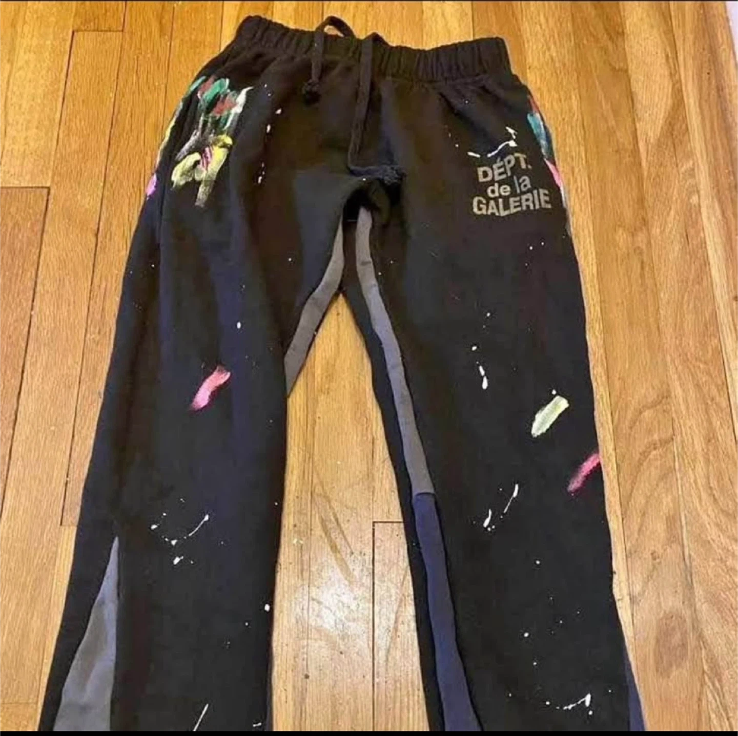 20Selling a pair of Dept. de la Galerie black sweatpants. They have a unique design with colourful paint splatters and stripes down the sides. A cool and comfy addition to your wardrobe!