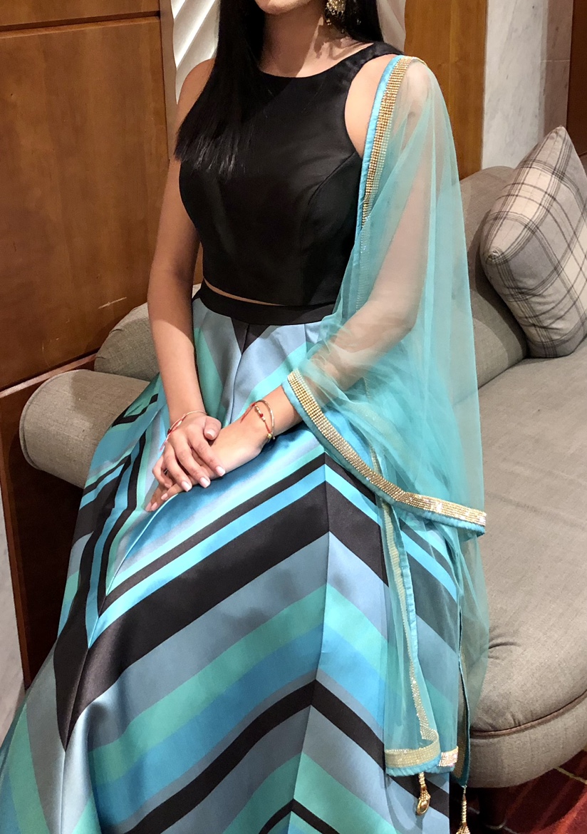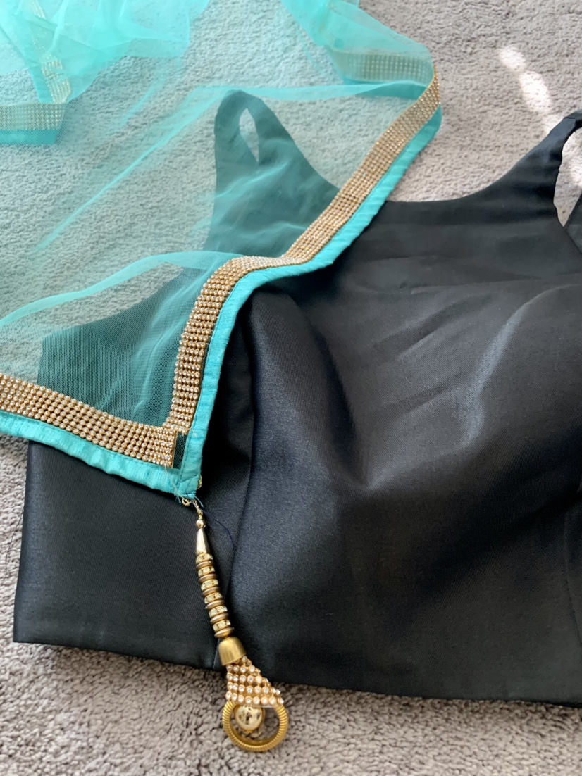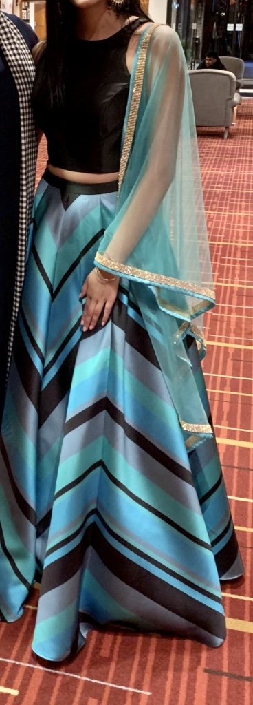 10Skirt has pockets, scarf has rhinestone border. Excellent condition.