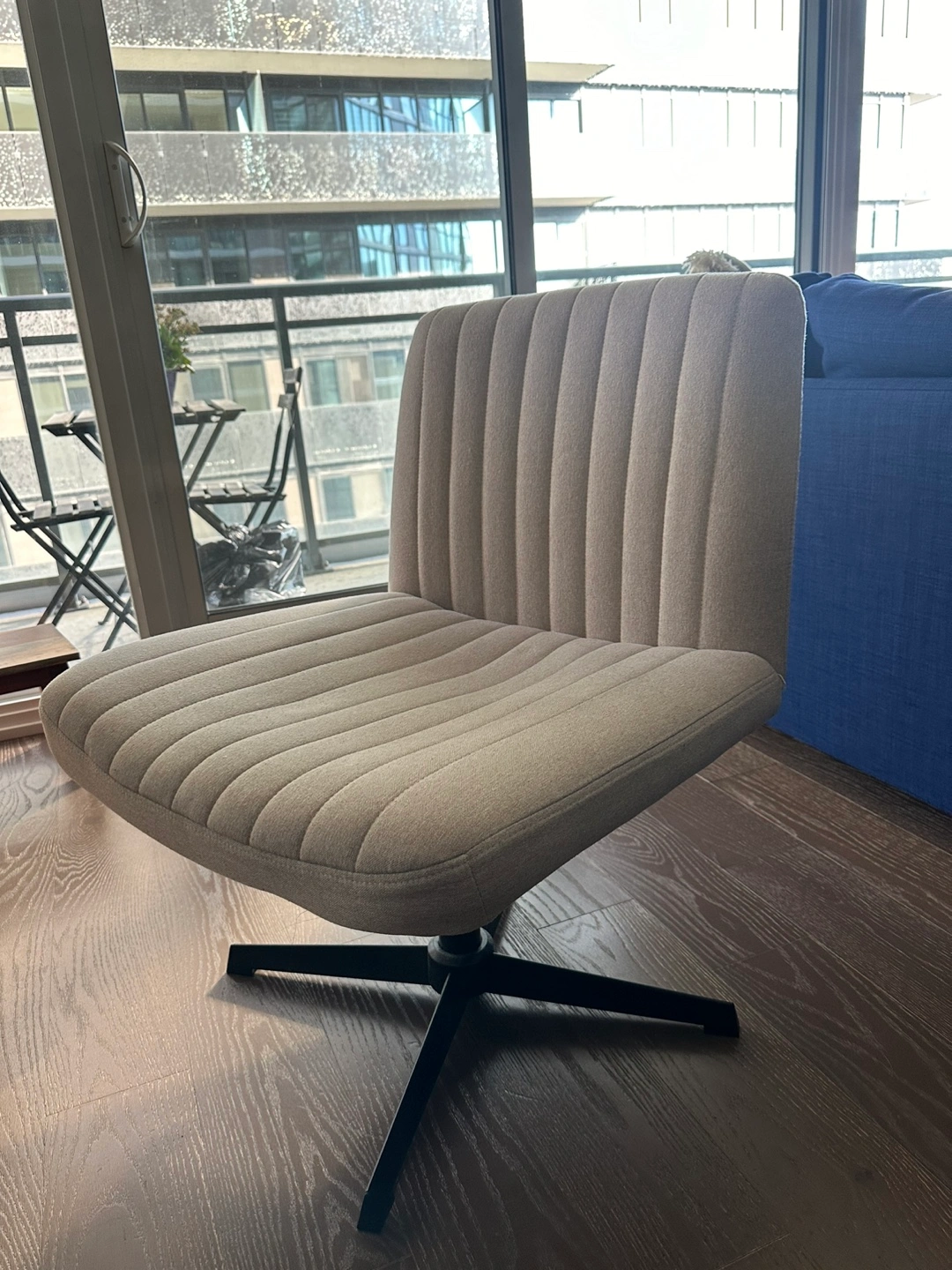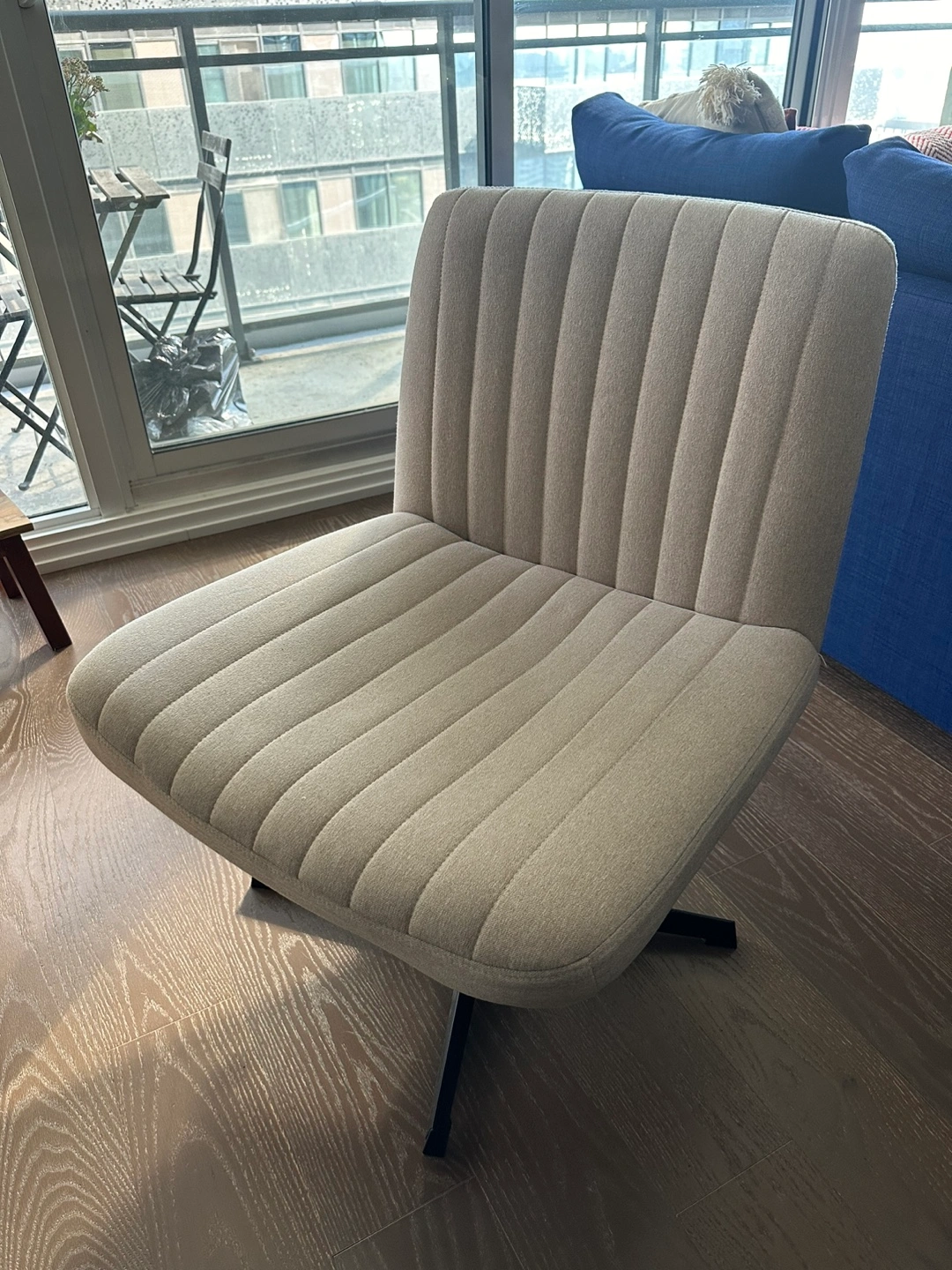 10Versatile wide-seat chair designed for style and comfort. Perfect for home offices, it features a 24-inch cushioned seat with adjustable height, lockable tilt, and a 120° recline for personalized comfort. The heavy-duty iron base adds stability, making it ideal for everyday use. It is the viral criss cross chair!