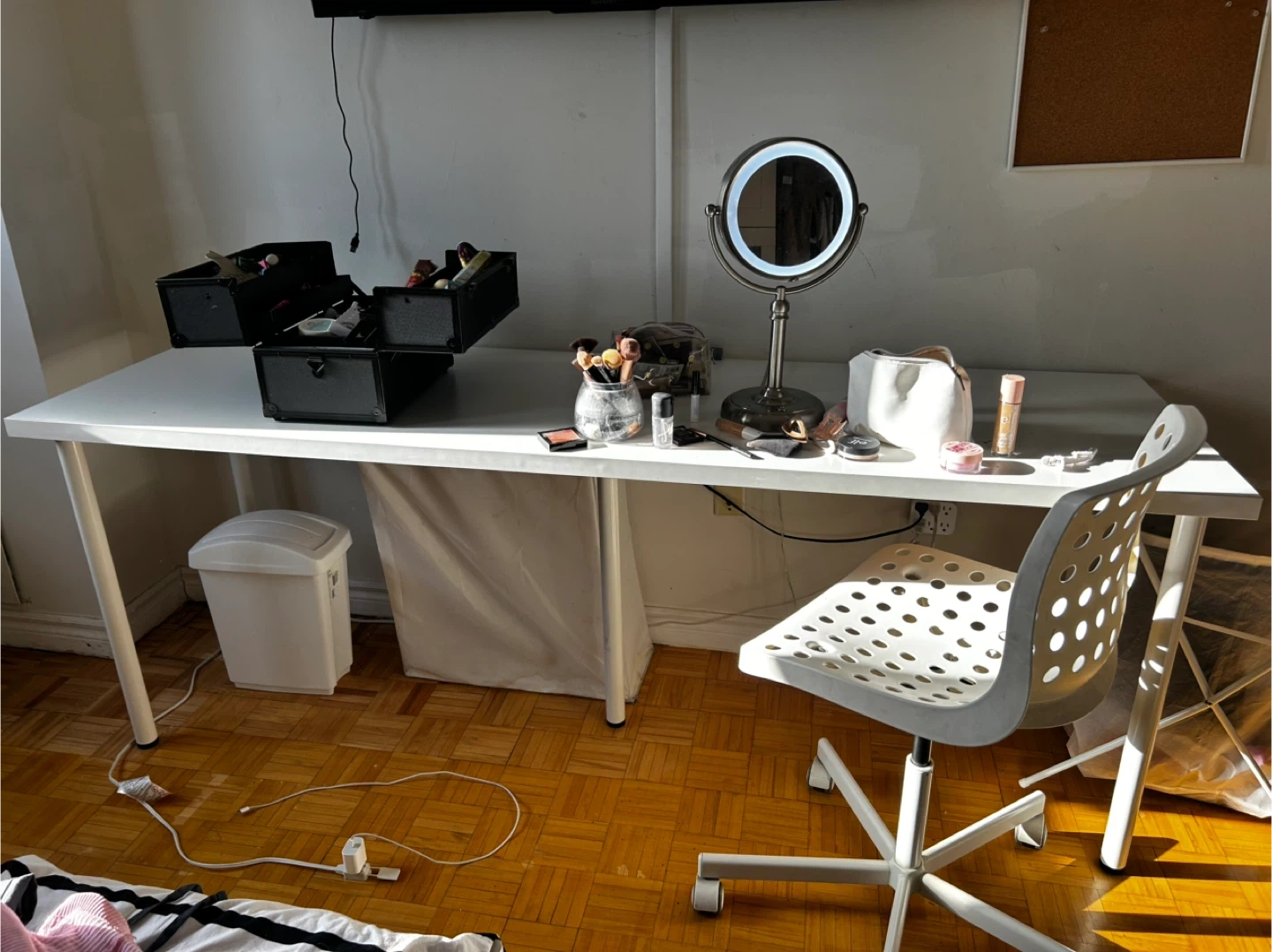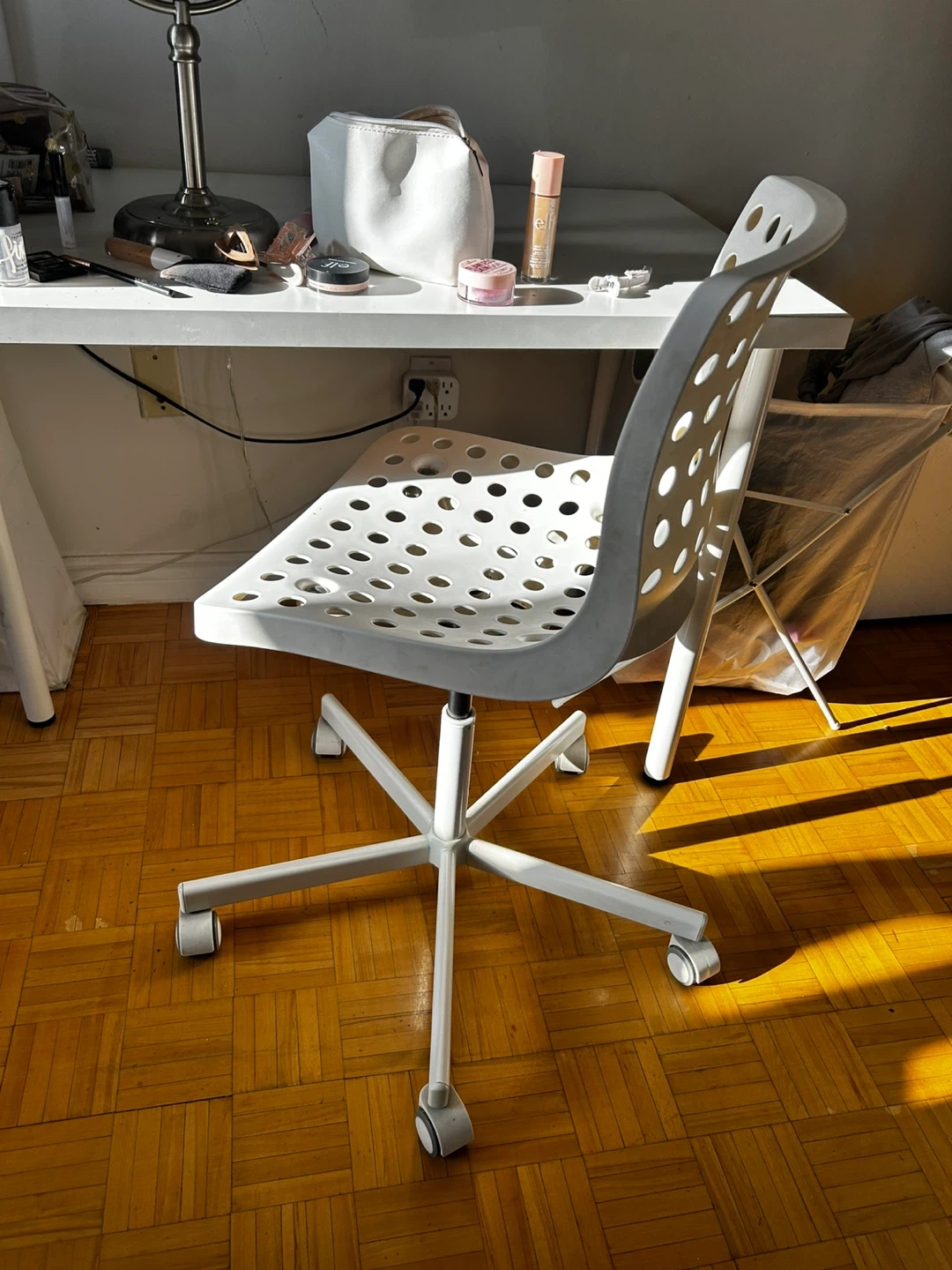 Moving soon and can’t take it with me 🚚💨 Practical and modern white desk + office chair set – perfect for work, study, or as a makeup vanity. 🖊️ Desk size: 2 m (length) × 60 cm (width) 🪑 Chair: Swivel with wheels, comfortable and easy to move ✅ Clean, sturdy, and in good condition ✅ Neutral white design fits any room style 💲 Price: $50 for the set (desk + chair) 📍 Pick up near 401 & 2101 Islington Ave. 👉 If this ad is up, it’s still available!