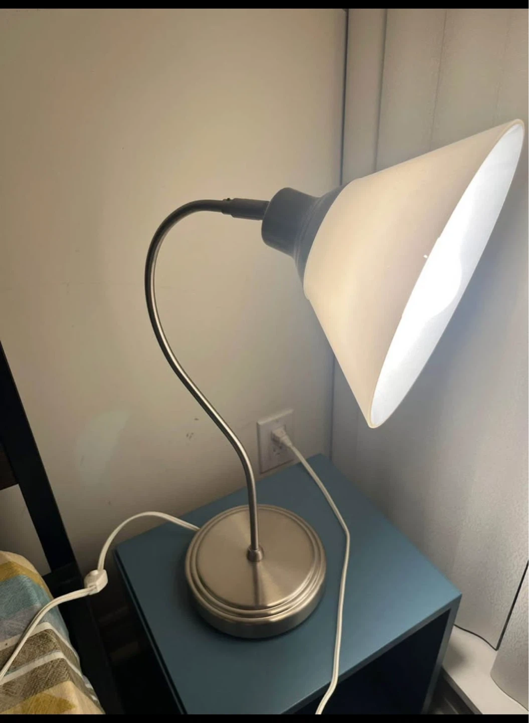 66Selling a desk lamp in great condition! It features a cone-shaped shade and a sleek, curved design. Perfect for adding some light to your workspace or bedside table