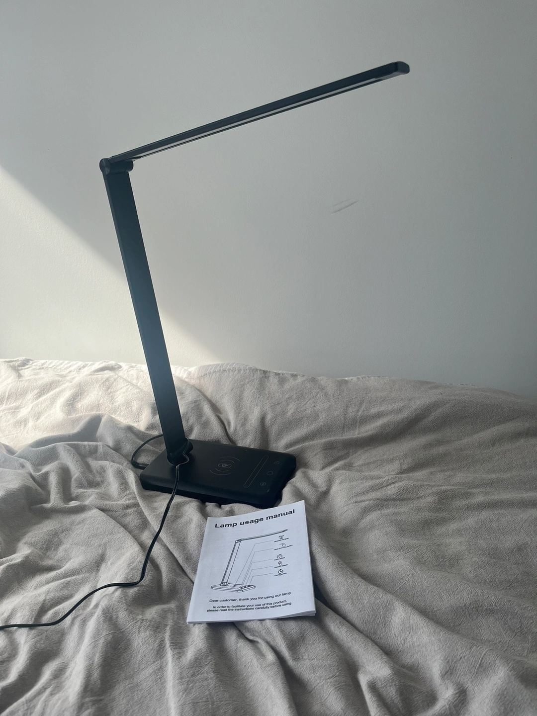 92LED Desk Lamp with Wireless Charger, USB Charging Port, Table Lamp with 6 Brightness Levels & 5 Lighting Modes, Touch Control, Auto-Off Timer, Dimmable Eye-Caring Desk Light with Adapter, Black Almost perfect condition, comes with instruction. Originally priced 35$