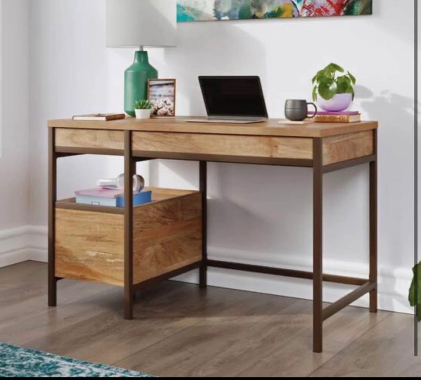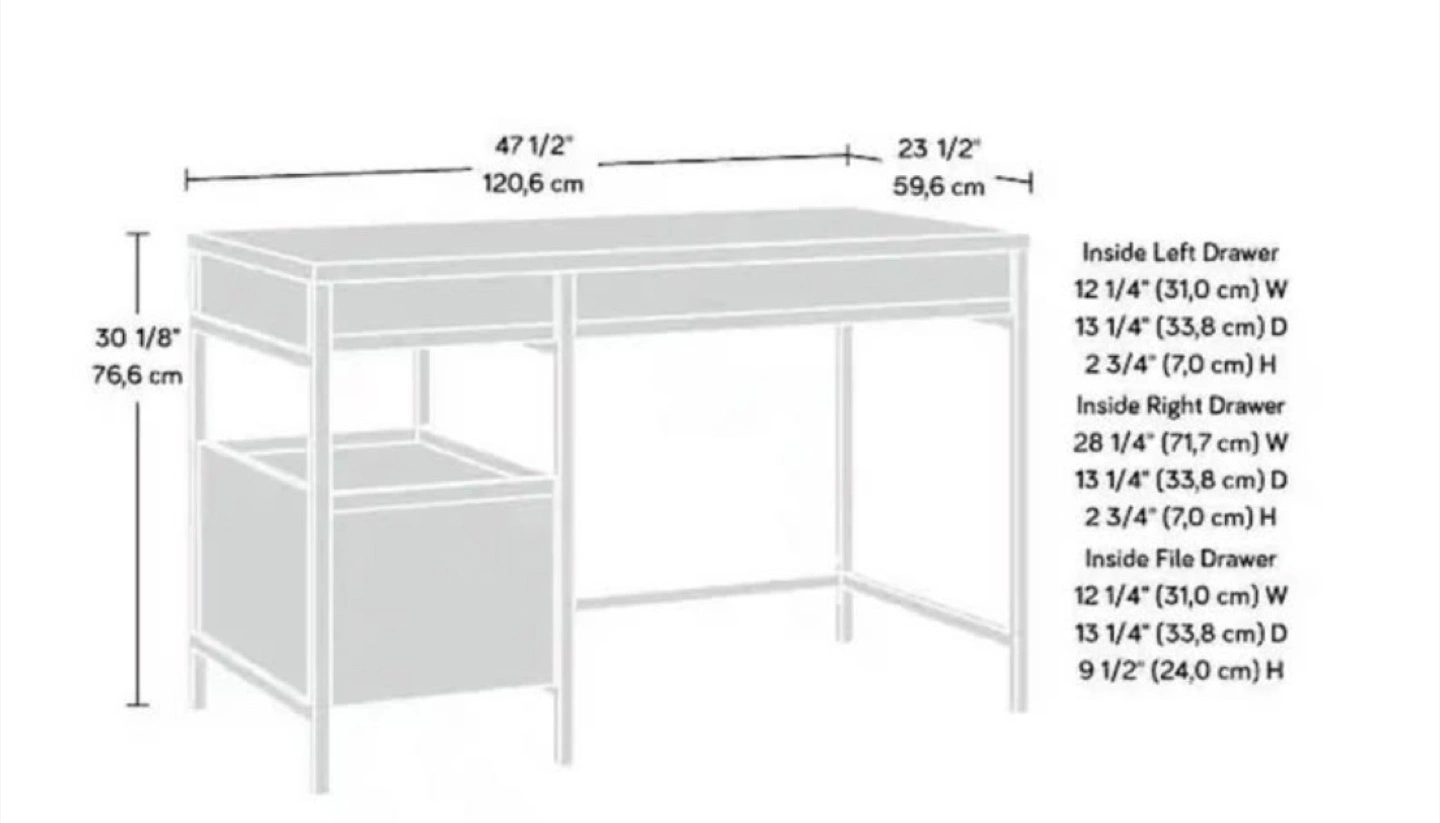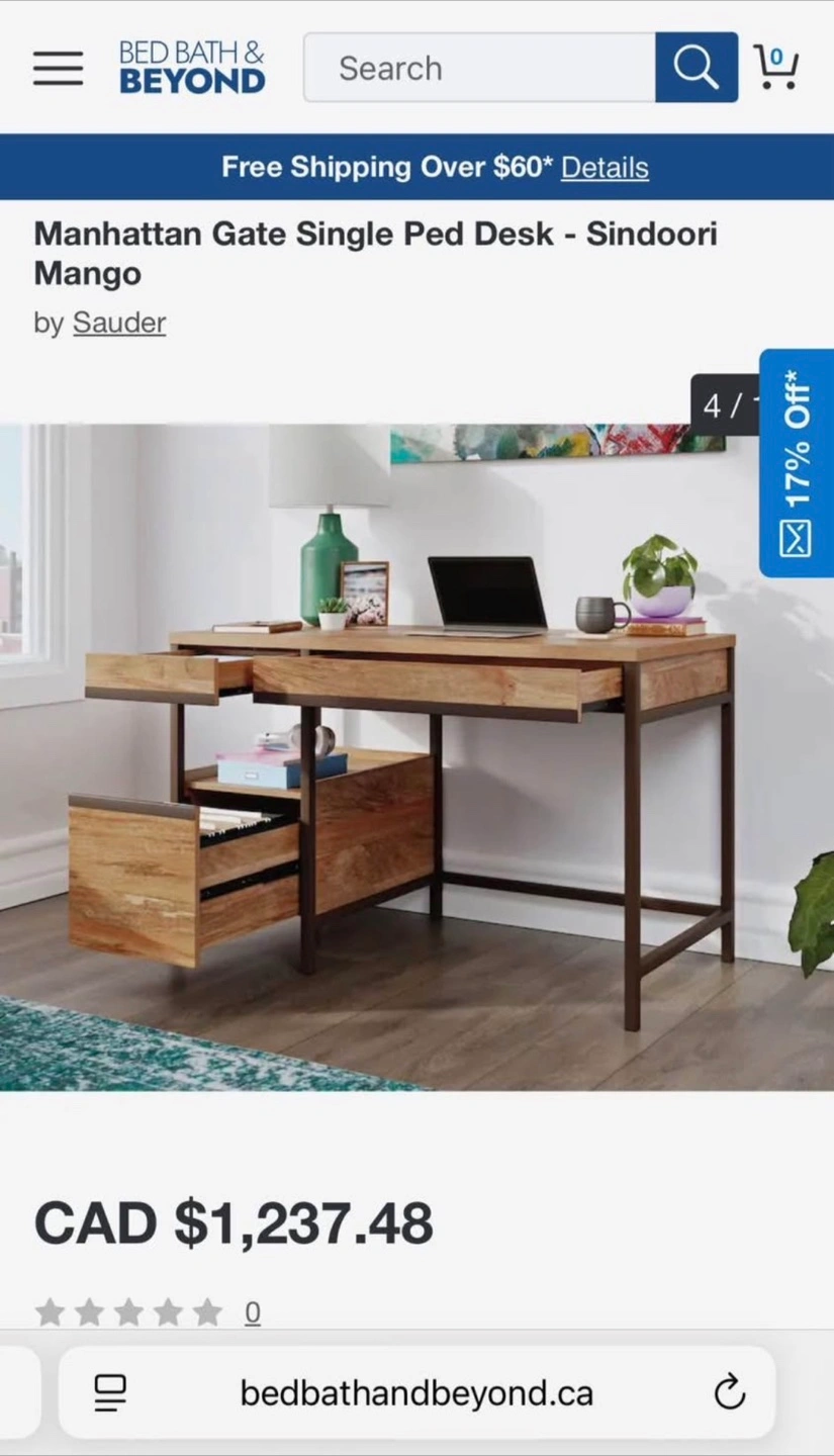 Brand new. Unopened. Selling a Sauder Manhattan Gate Single Ped Desk in Sindoori Mango. It's a stylish and functional desk that would look great in any home office or workspace. Originally listed for $1,237.48 CAD
