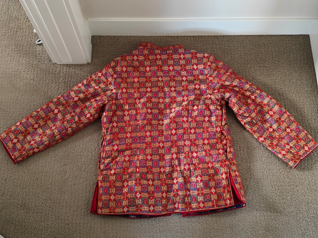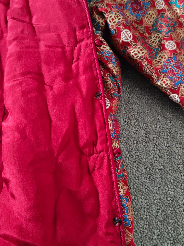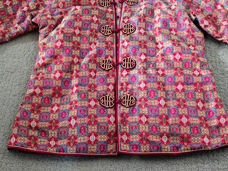 I am selling a Women Traditional Chinese Cheongsam Blazer / Dress Suit Jacket / Qipao Mandarin Style Jacket in used, like-new condition. No rips, tears, or stains. The jacket is lined, has 4 snap button closures in the front, and 5 knot and loop button closures in the front. Ideal wear for a wedding banquet, anniversary event, birthday party, Chinese Lunar New Year and other festivals, etc. The Chinese style designs suit both casual and fashionable wear.