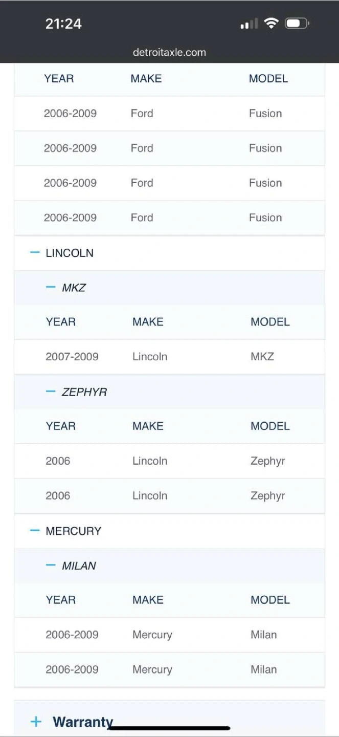 Detroit Axle Rack and Pinion β Ford Fusion / Mercury Milan / L