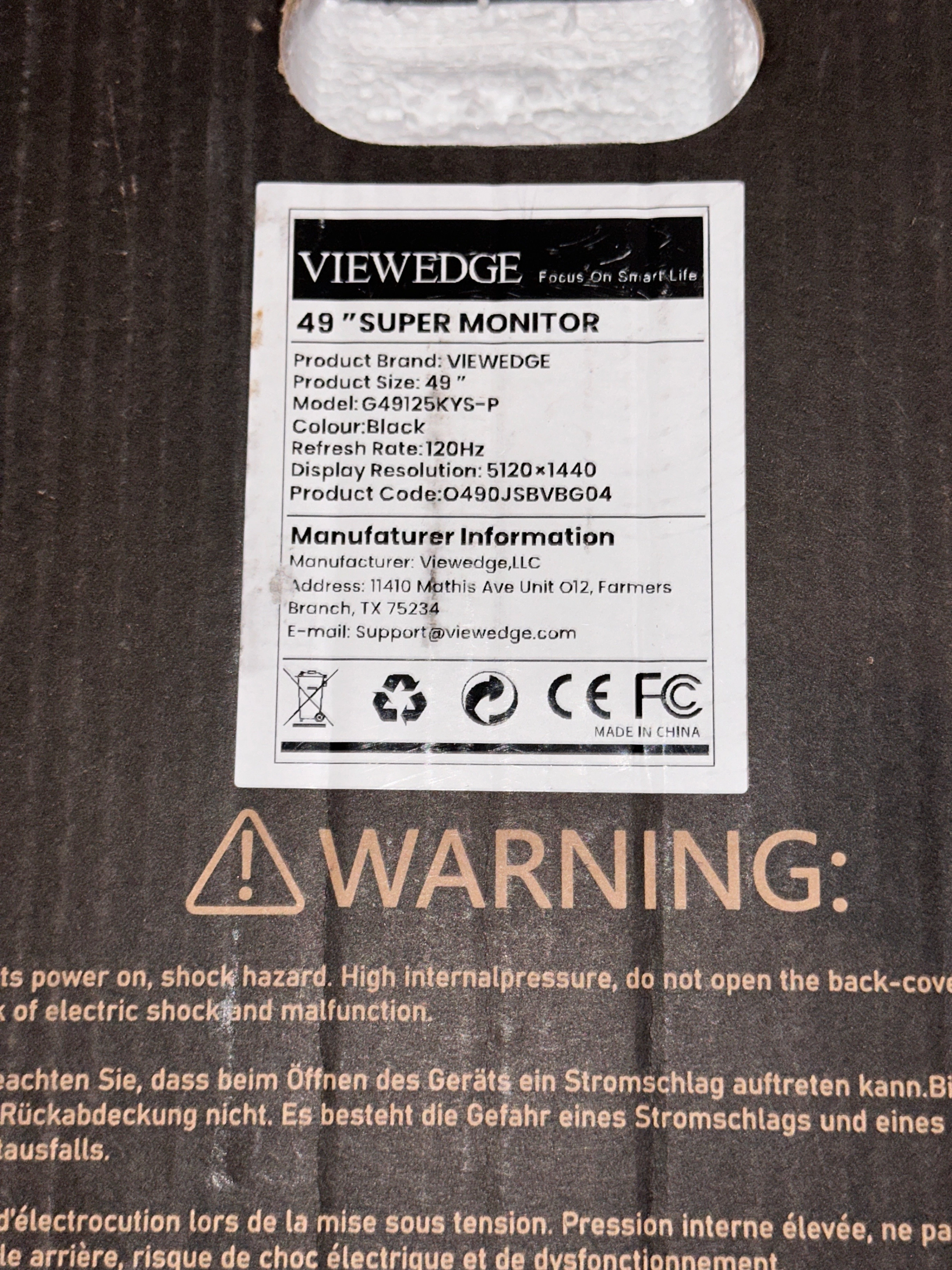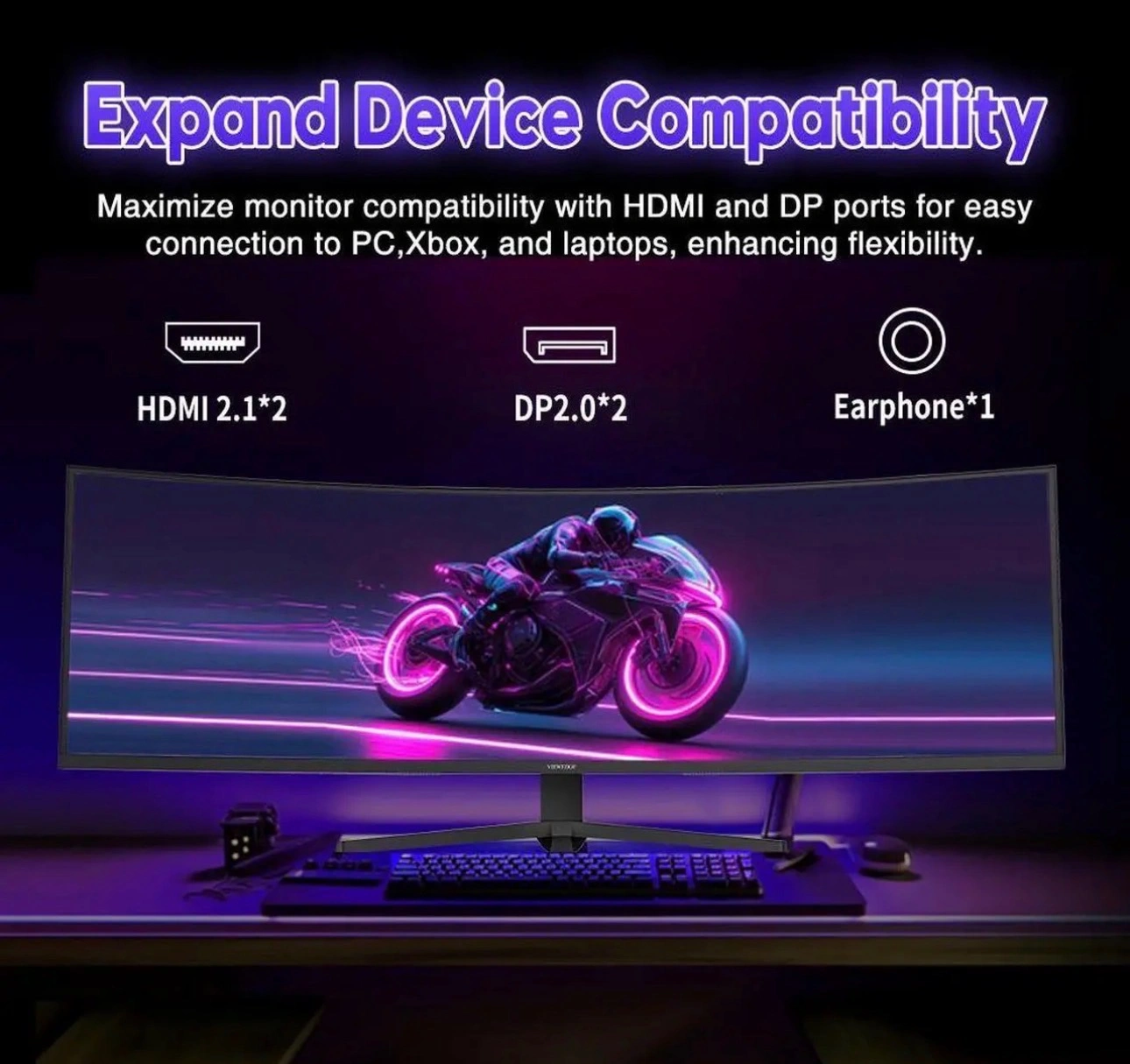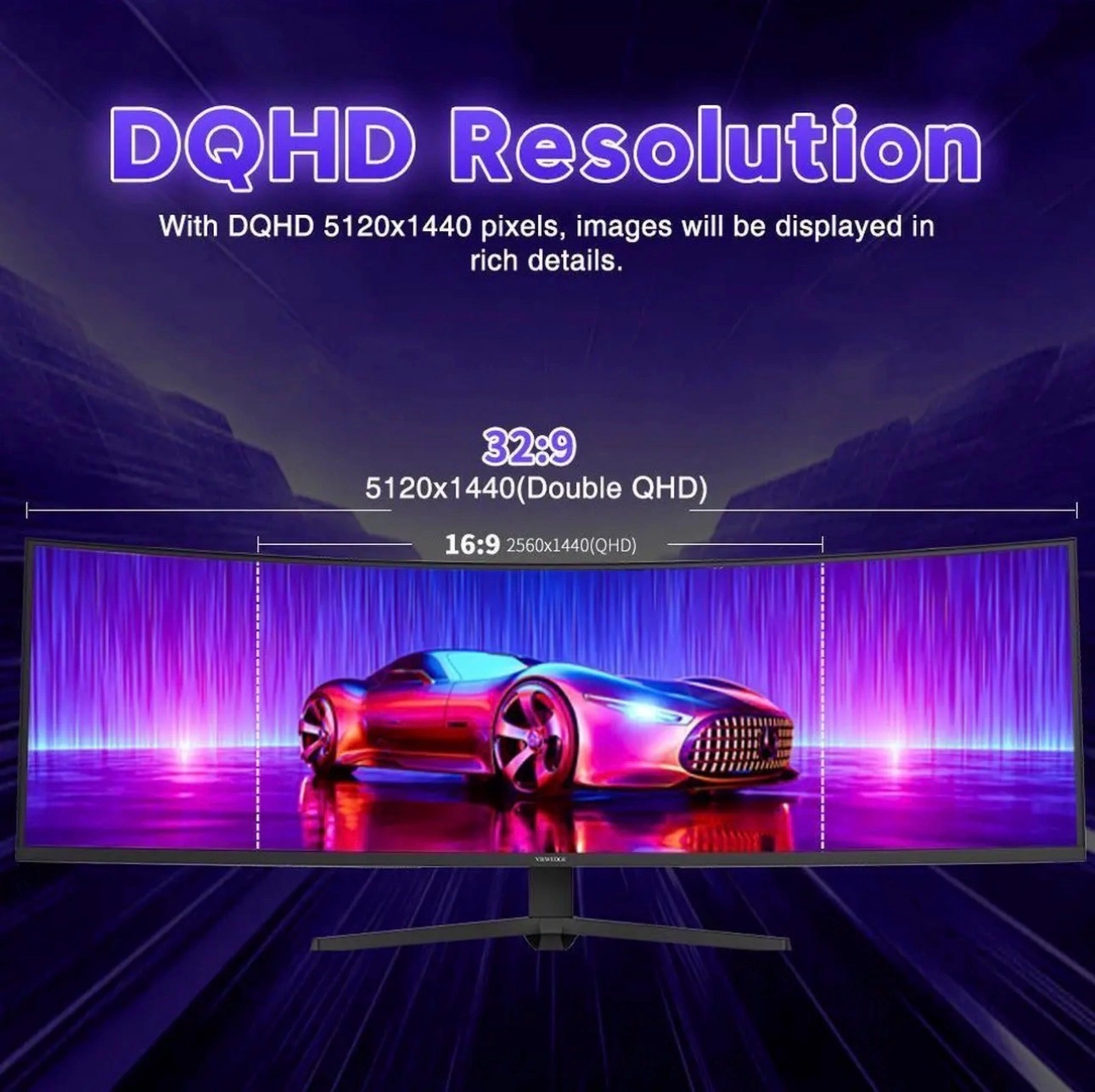 Gaming Monitor 49" Ultra-Wide 1ms 120Hz DQHD 5120×1440 120% sRGB
