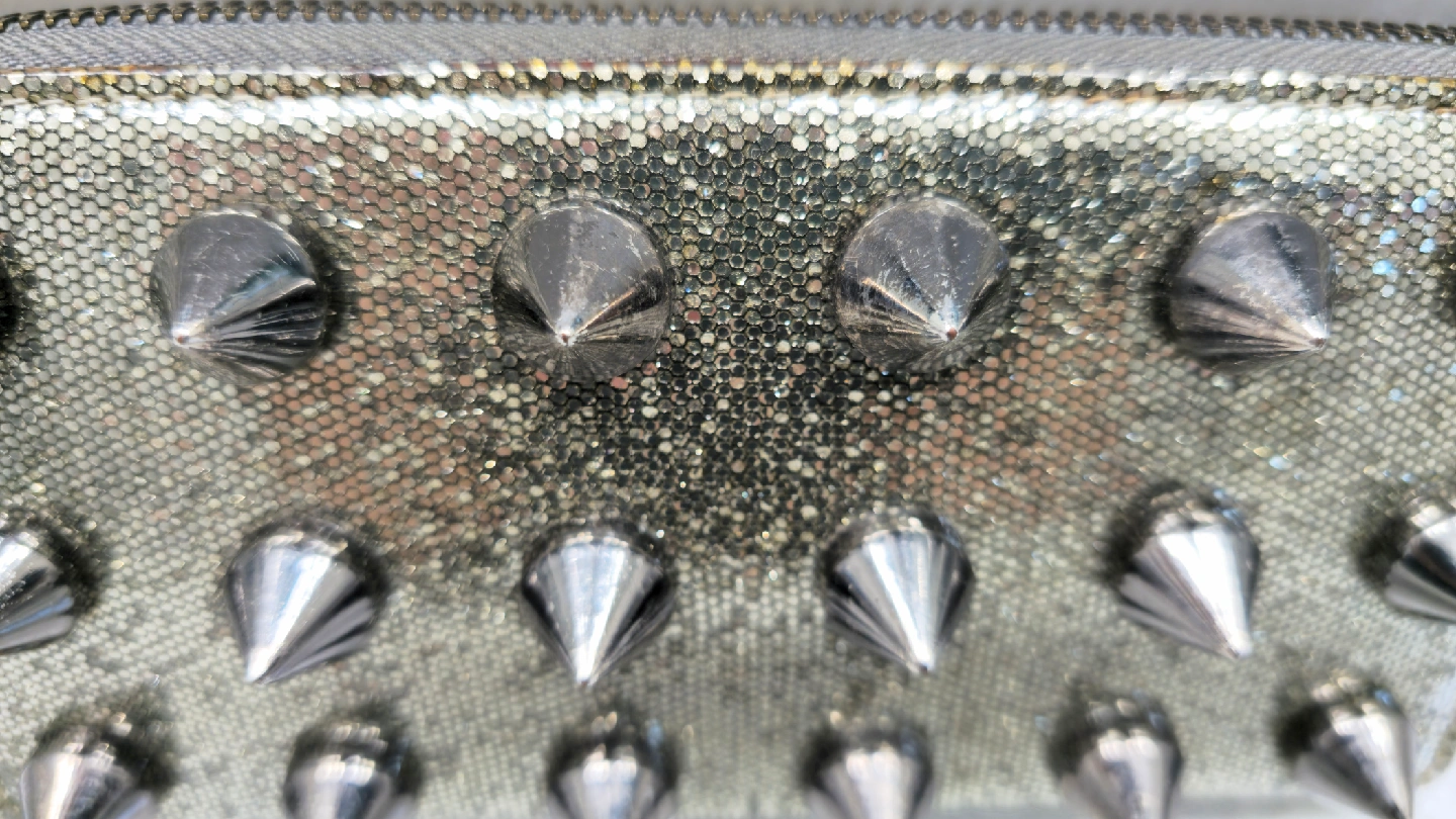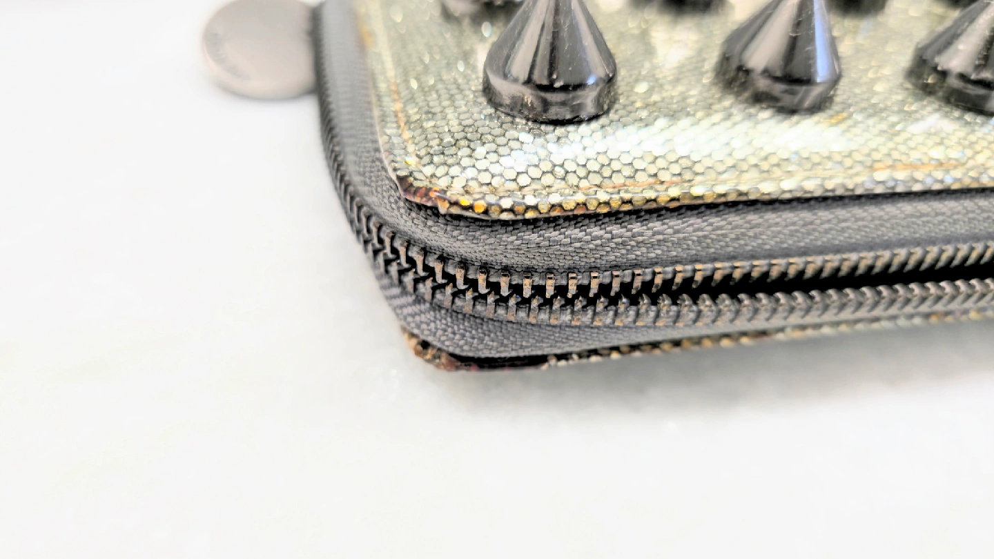 Pet & Smoke-Free Home - Spiked wallet purchased a very long time ago that's been sitting in my closet not being used. - Metal spikes show wear & scratches & spots where corners have discoloured.
