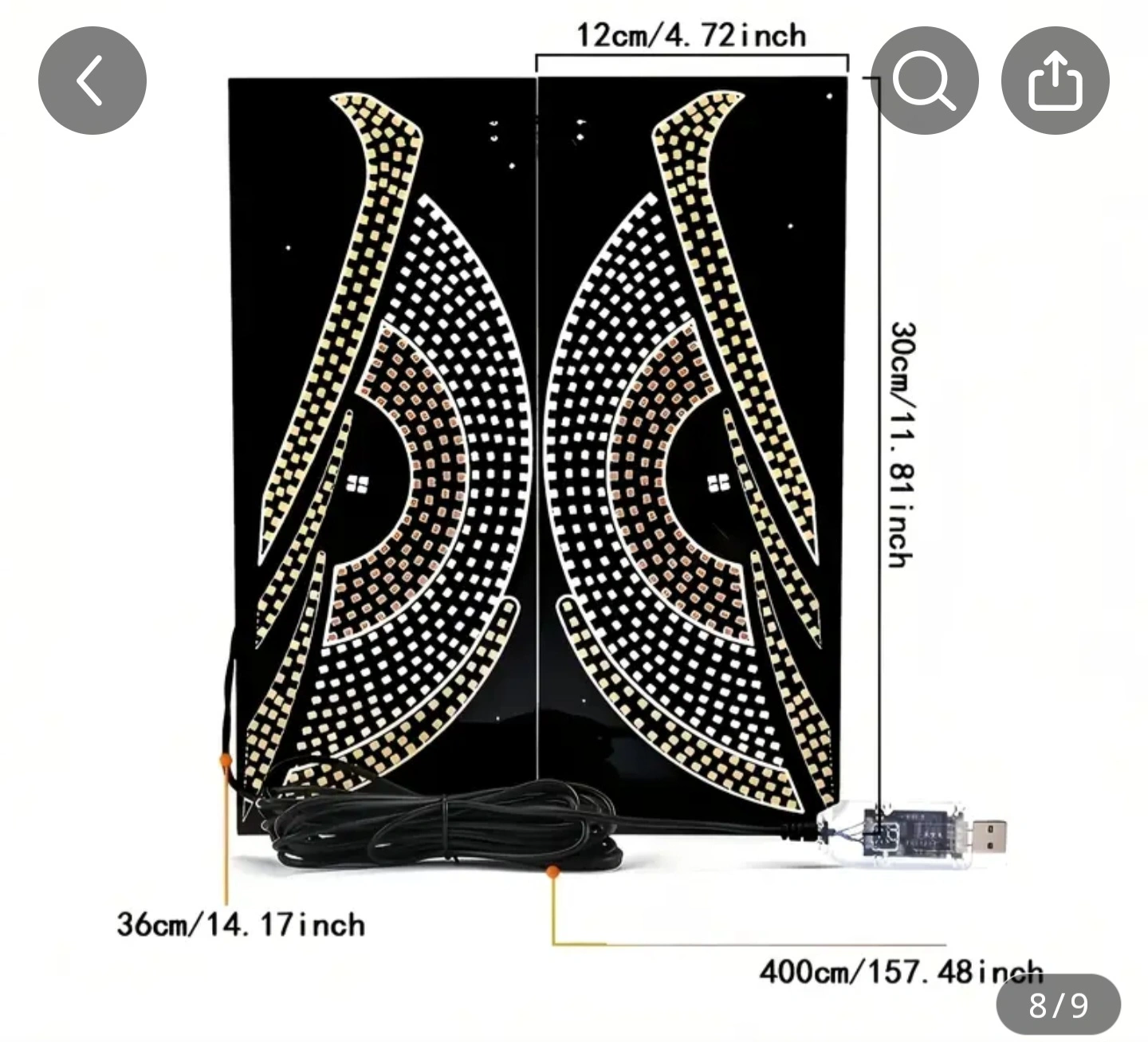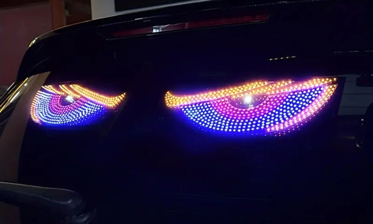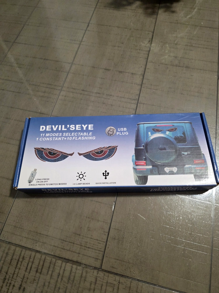 I'm selling a pair of Devil Eye LED car stickers! They're brand new and come with the box. The dimensions are approximately 30cm/11.81 inch by 12cm/4.72 inch. Included are the stickers, a USB connector, and some tape to help with installation