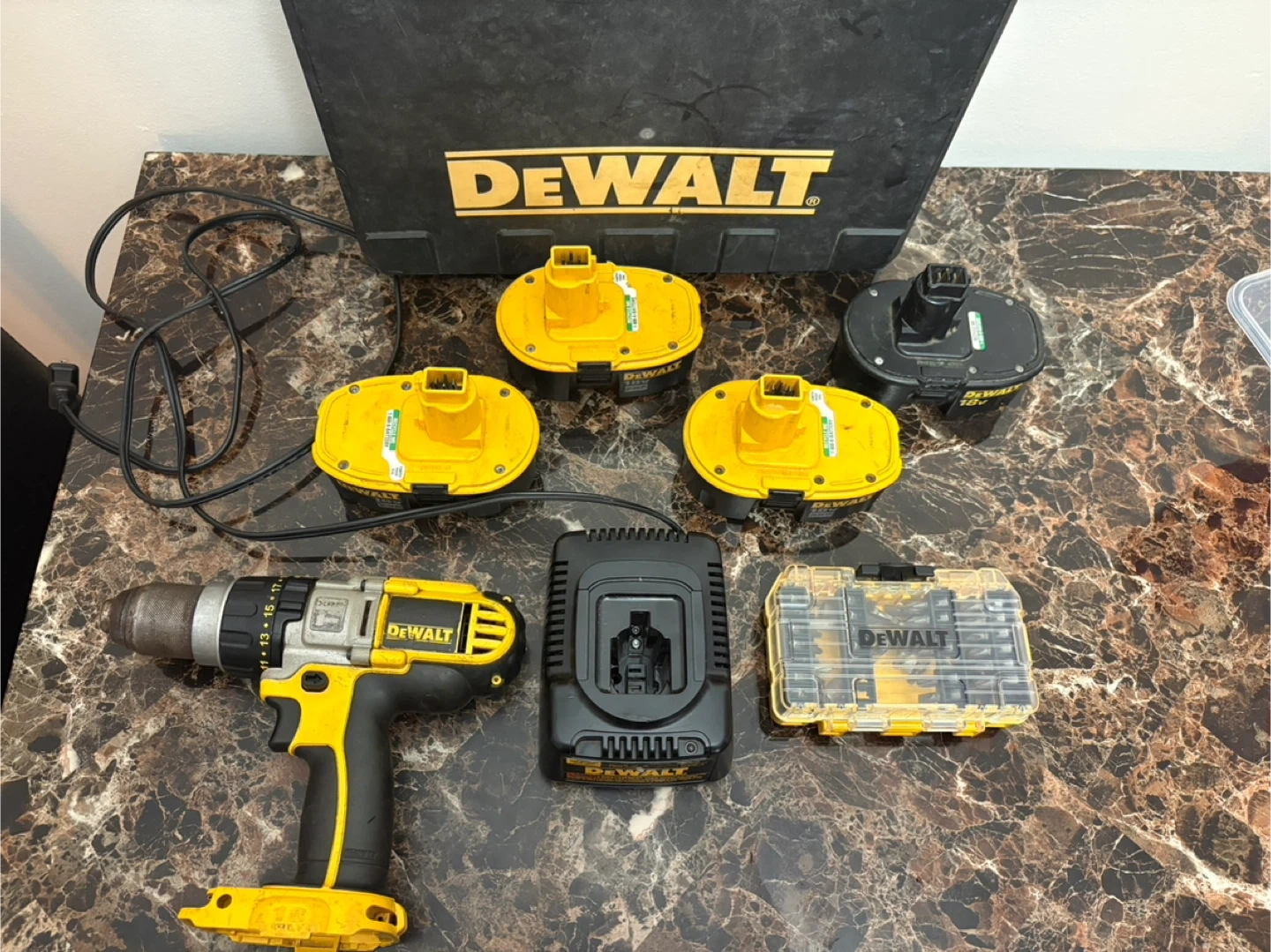 10Selling a DeWalt cordless hammer drill, model DCD950. It's a Type 3, 18V drill/driver/hammerdrill. Comes with the DW9116 7.2V - 18V 1-hour charger and a DeWalt carrying case. Also includes multiple batteries