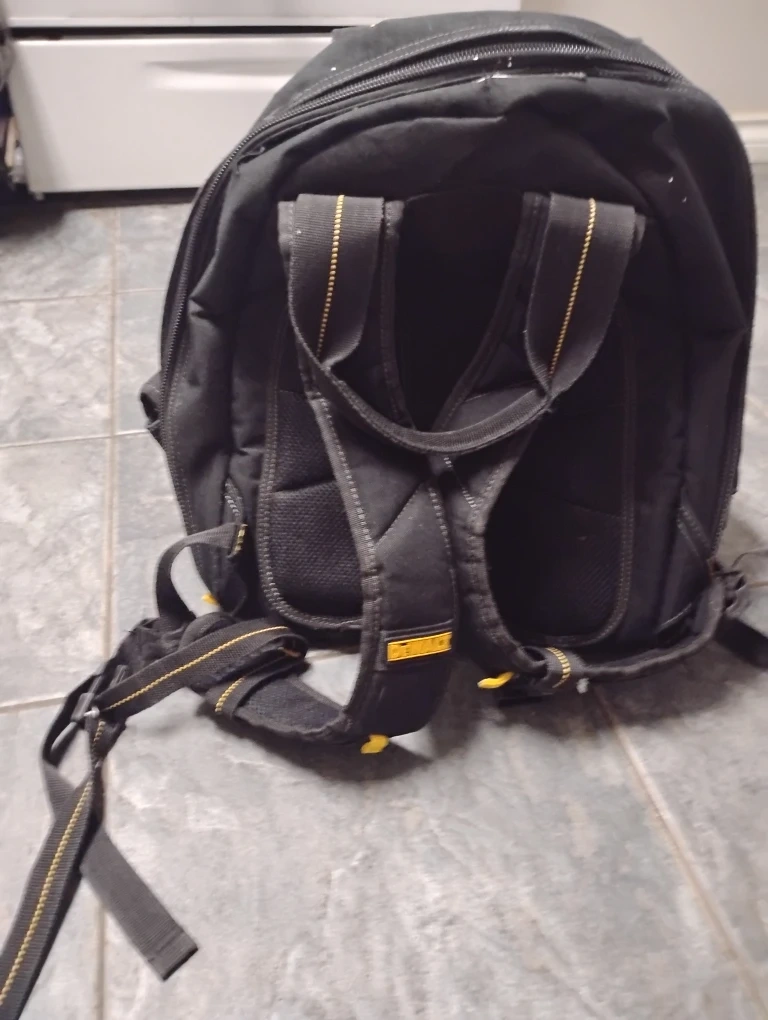 60Selling a DeWalt tool backpack in black and yellow. It's in good condition and ready to carry your tools to the job site!