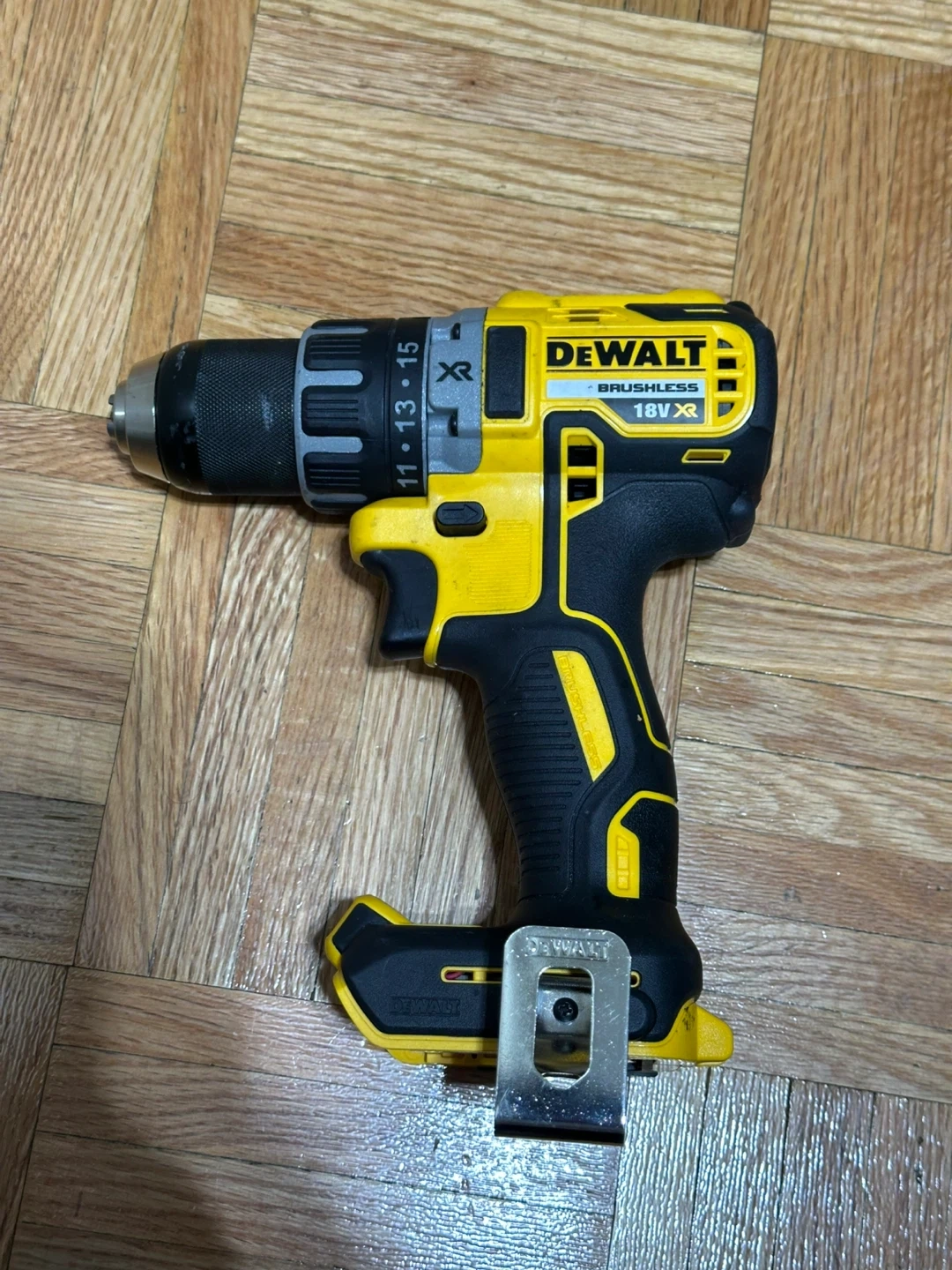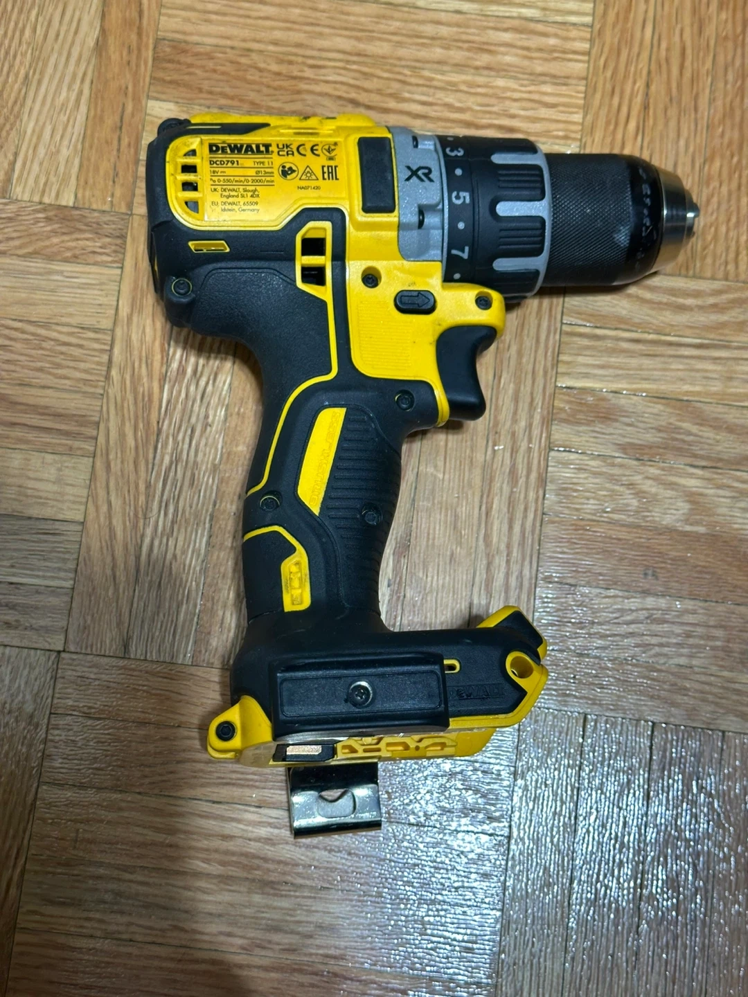 41Selling a DeWalt DCD791L2 18V XR cordless drill. It's in great condition and ready for your next project! The drill is yellow and black, and it's lightweight and portable