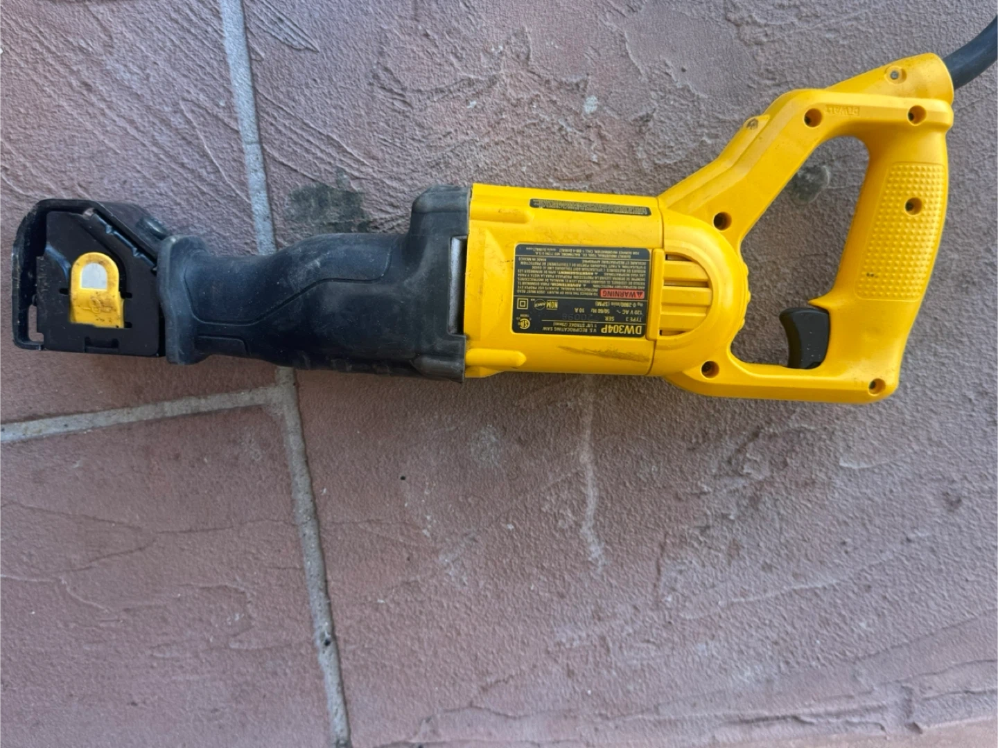 Selling a DeWalt DW304P reciprocating saw. It's a Type 3 model, operating at 120 V AC, 50/60 Hz, and 10 A. The stroke is 1 1/8" (29mm) and the speed is no 0-2800/min (SPM). It's in used condition but still works great for cutting through various materials