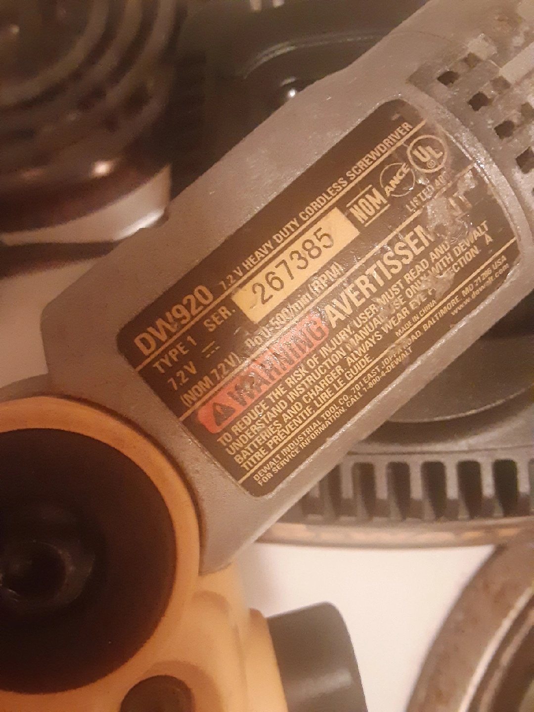 527DeWalt DW920 7.2V heavy-duty cordless screwdriver. It shows some signs of use, but it's still in good working condition. It comes with the charger. works really well!! different speeds local pickup free, you make online donation instead