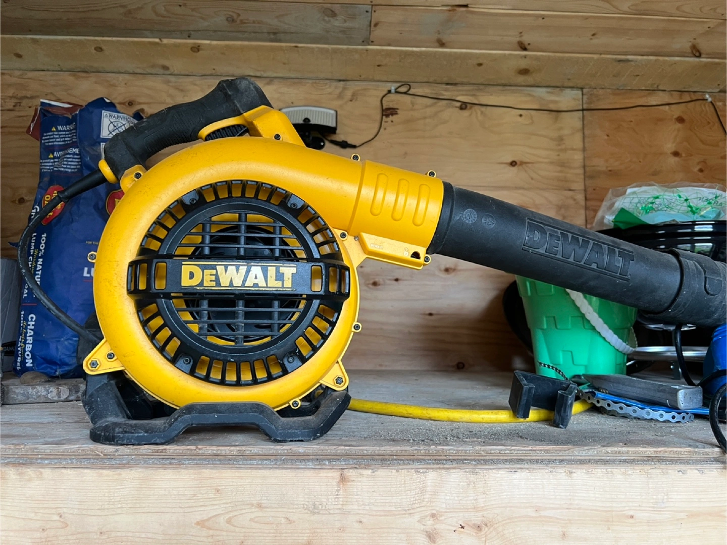 Selling a DeWalt leaf blower in good working condition. It's yellow and black, and ready to help you with your yard work!