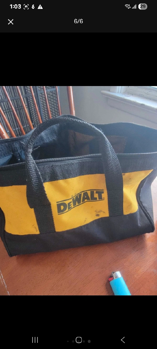 36Selling a DeWalt power tool set, including a tool bag, multiple batteries, a drill, and a charger. someone interested msg me thank you.