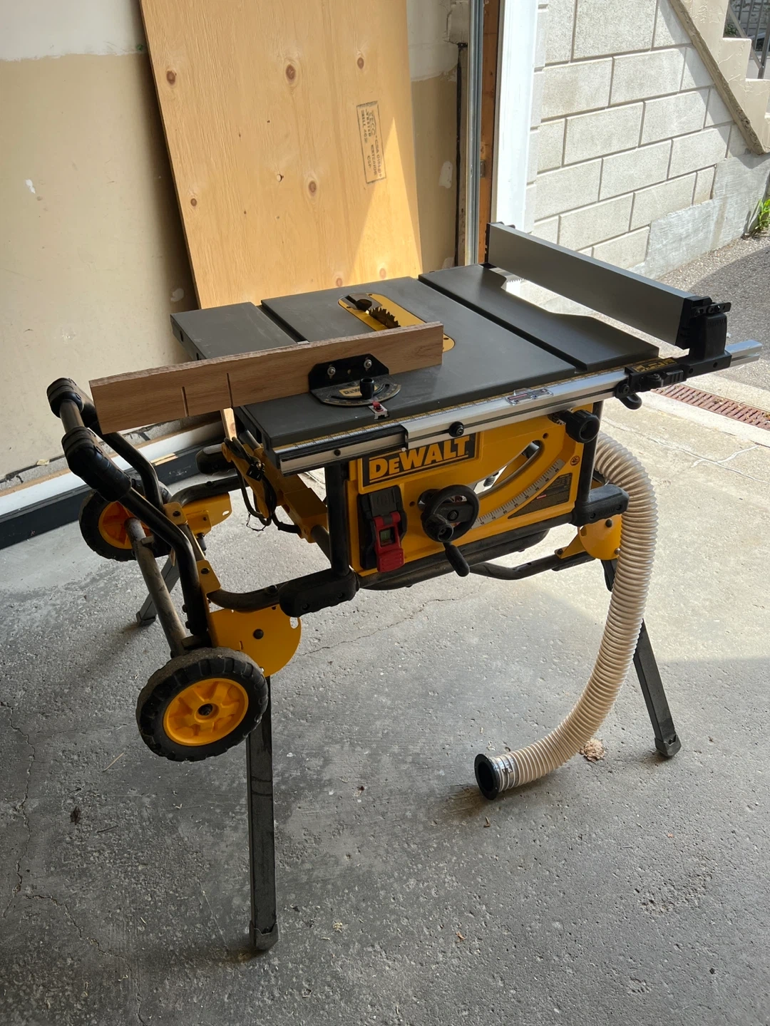 Selling a DeWalt table 10" blade version (the bigger one that can take dado blades) saw in good working condition. Great for any woodworking projects you might have on the go! It's been well-maintained and is ready for its next home. Comes with the dust collection hose.