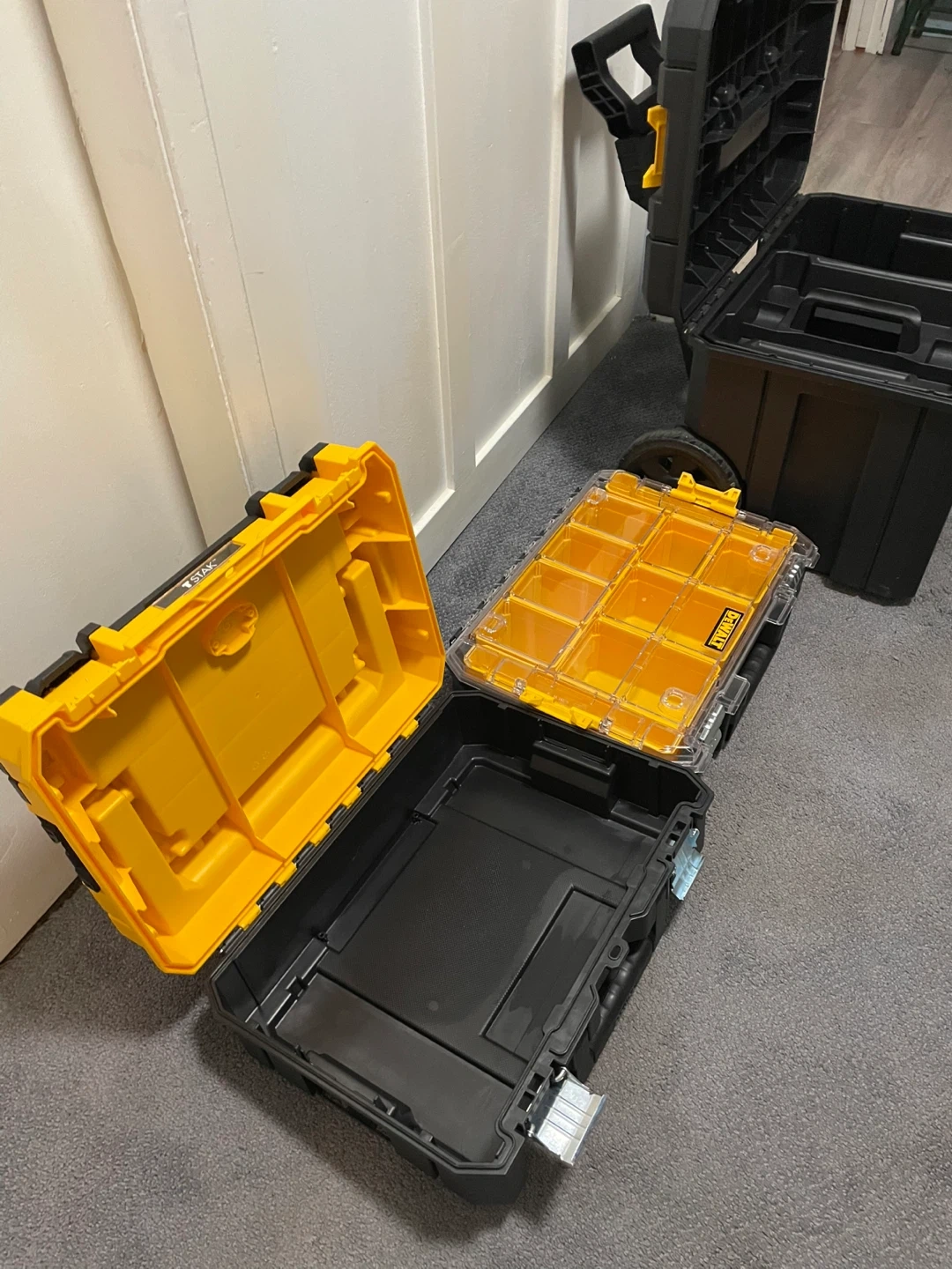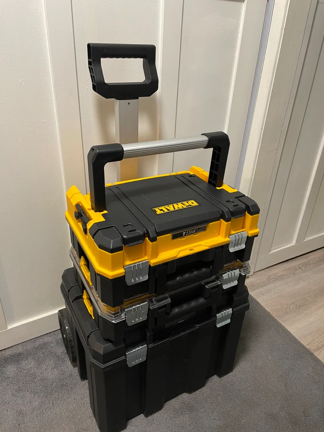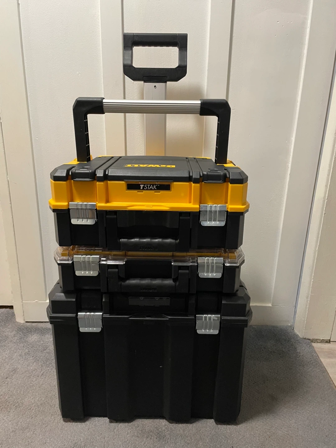 5Selling a DeWalt TSTAK rolling tool box tower! This is a great set for keeping your tools organized and easy to transport. The TSTAK system allows you to customize and stack the boxes to fit your needs. Perfect for any job site or DIY project!