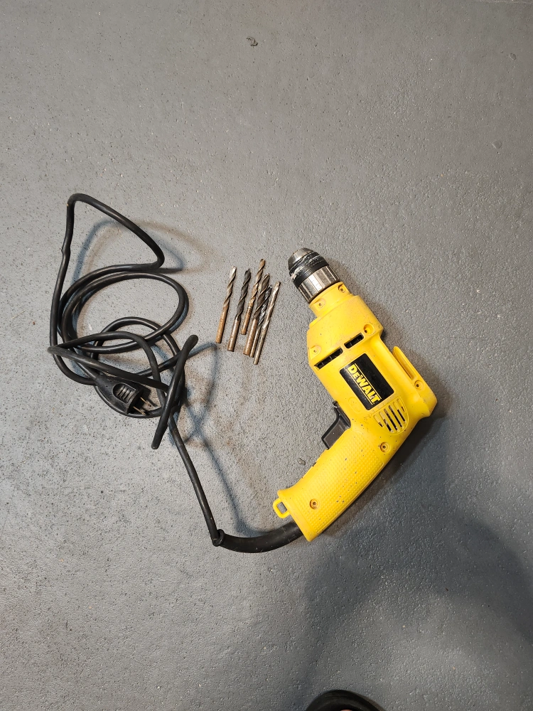 Selling a DeWalt corded drill. It's yellow and comes with a set of drill bits. Great for any DIY projects around the house